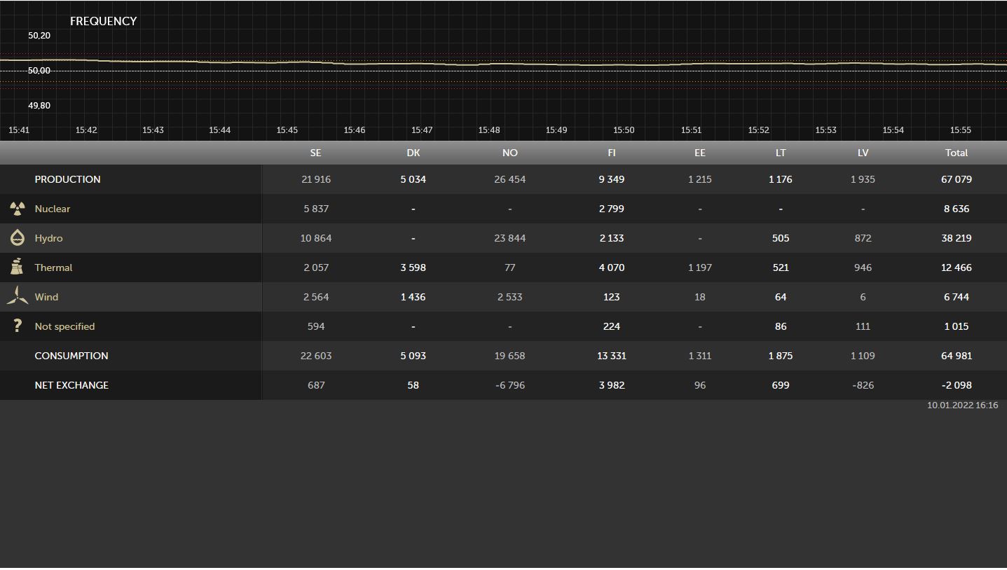 Paar pildikest praegu pildi meie regiooni elektri toodangust ja impordist/ekspordist ning hindadest.