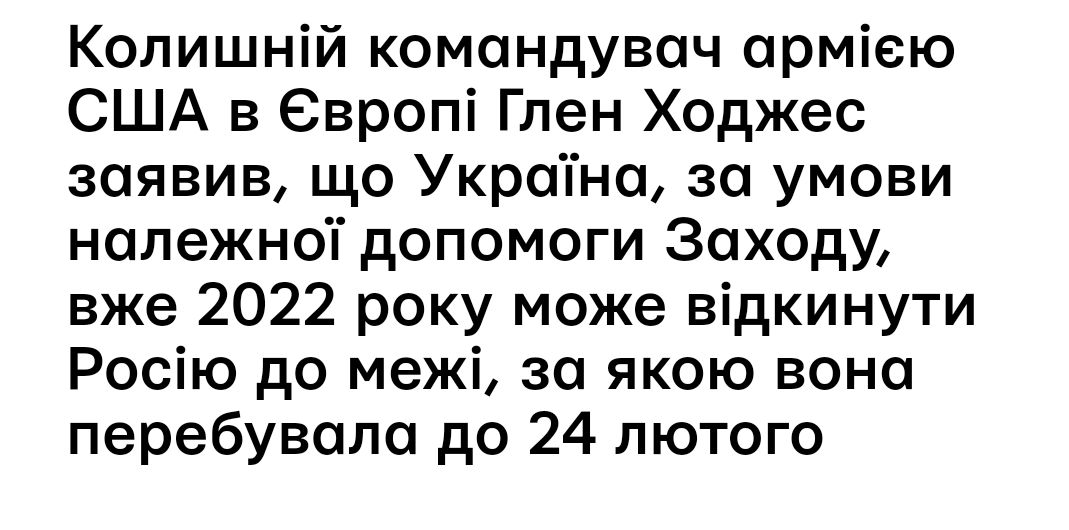 Endine USA armee ülem Euroopas Glenn Hodges ütles, et Ukraina suudab korraliku Lääne abiga tõugata Venemaa tagasi 2022. aasta piiridele, mis olid olnud 24. veebruarini.