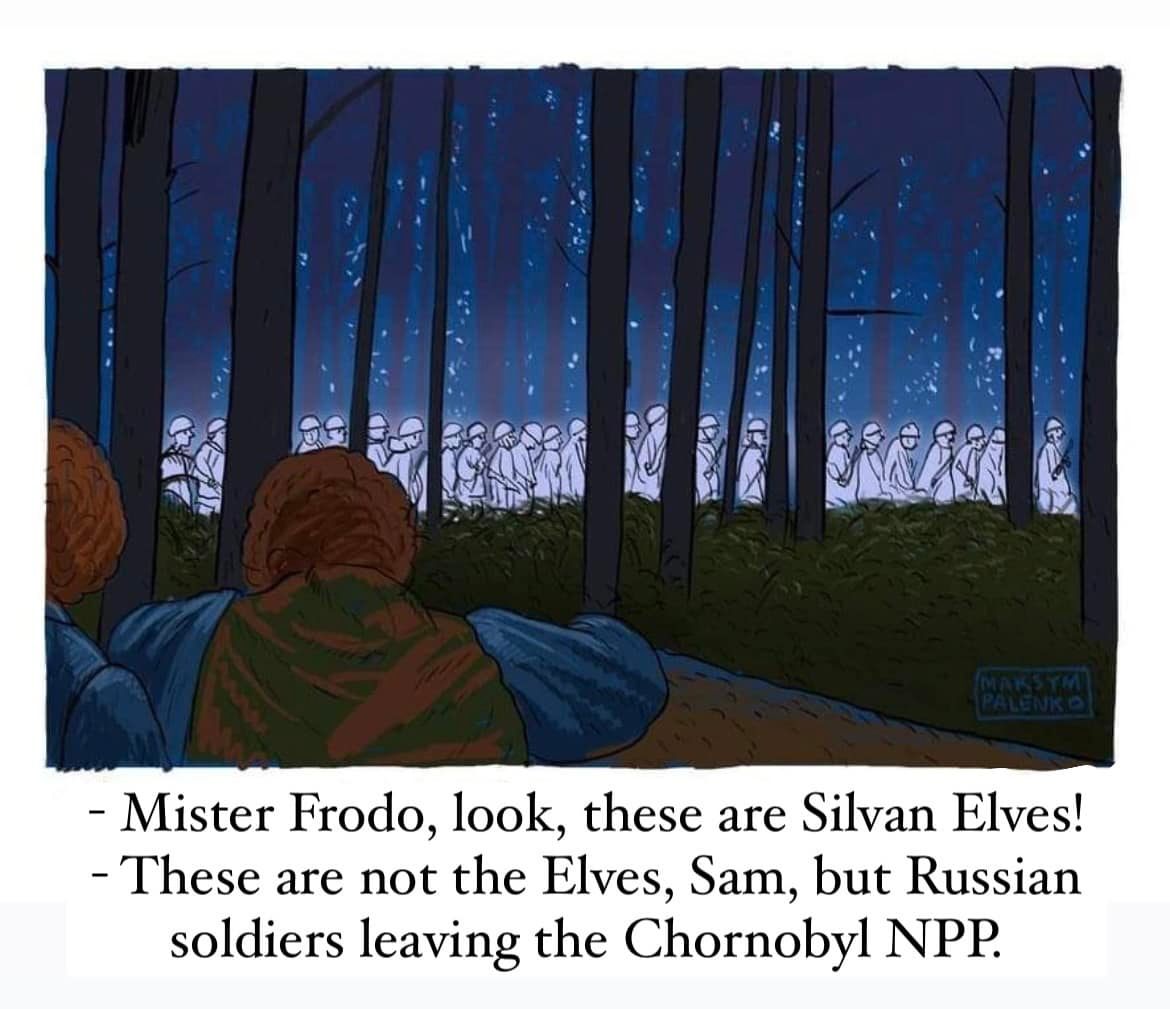 Samuti sai teatavaks, et pärast pikka viibimist Tšernobõli metsas mõned meie sõdurid, täpsemalt kõik, tundsid kerget ebamugavustunnet. Võimalik, et sõid midagi mitte päris õiget. Pärast ravi on meie sõdurid jälle valmis asuma rivvi, et seista kodumaa eest. Kahjuks mõned kehaosad aga enam seista ei suuda.