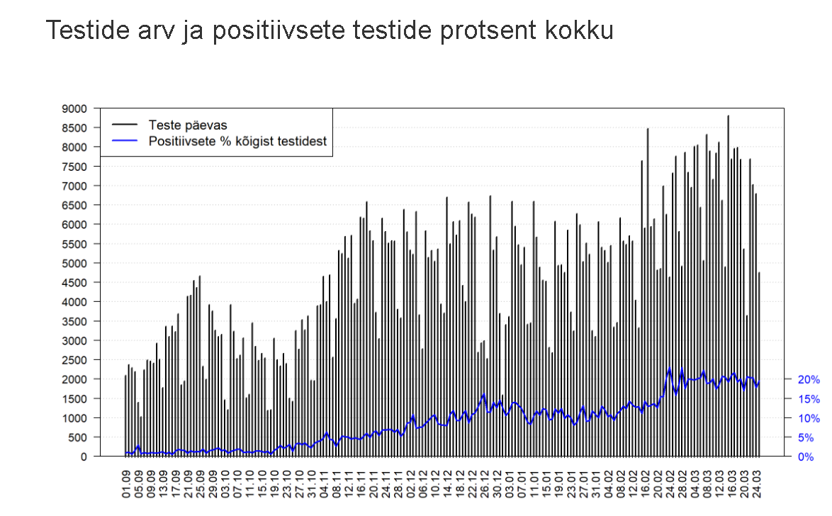 Protsent - see kui palju teste on positiivsed on ca 20 juba 24 veebruarist saadik ja see on platoo mitte mingi murdepunkt.