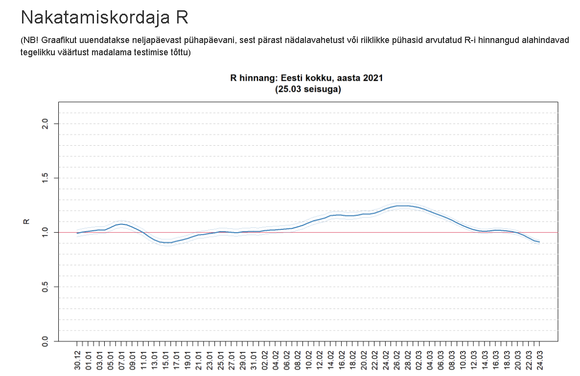 Üle Eesti on nakatumiskordaja langenud 0,9 lähedale, langustrend on selge Harjumaal, Lääne-Virumaal ja Saaremaal. Samuti on reoveeuuringutes näha, et viiruse levik on hakanud taanduma. Langustrendi illustreerib ka seitsme päeva libiseva keskmise graafikud. See andis Fischerile põhjust kinnitada, et piirangud on omanud positiivset mõju. Siiski on Eestis jäänud teatav platoo juba pikemaks ajaks stabiilselt kõrgele tasemele. Võrdluseks, kui Ühendkuningriigis tõusid nakatumisnäitajad püstloodis üles, siis piirangutega tulid need sama kiirelt ja järsku ka alla. Miks Eestis pole nii juhtunud?