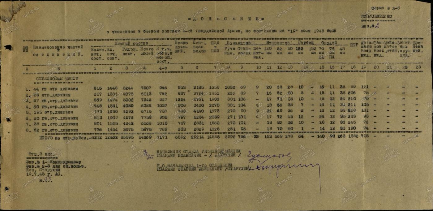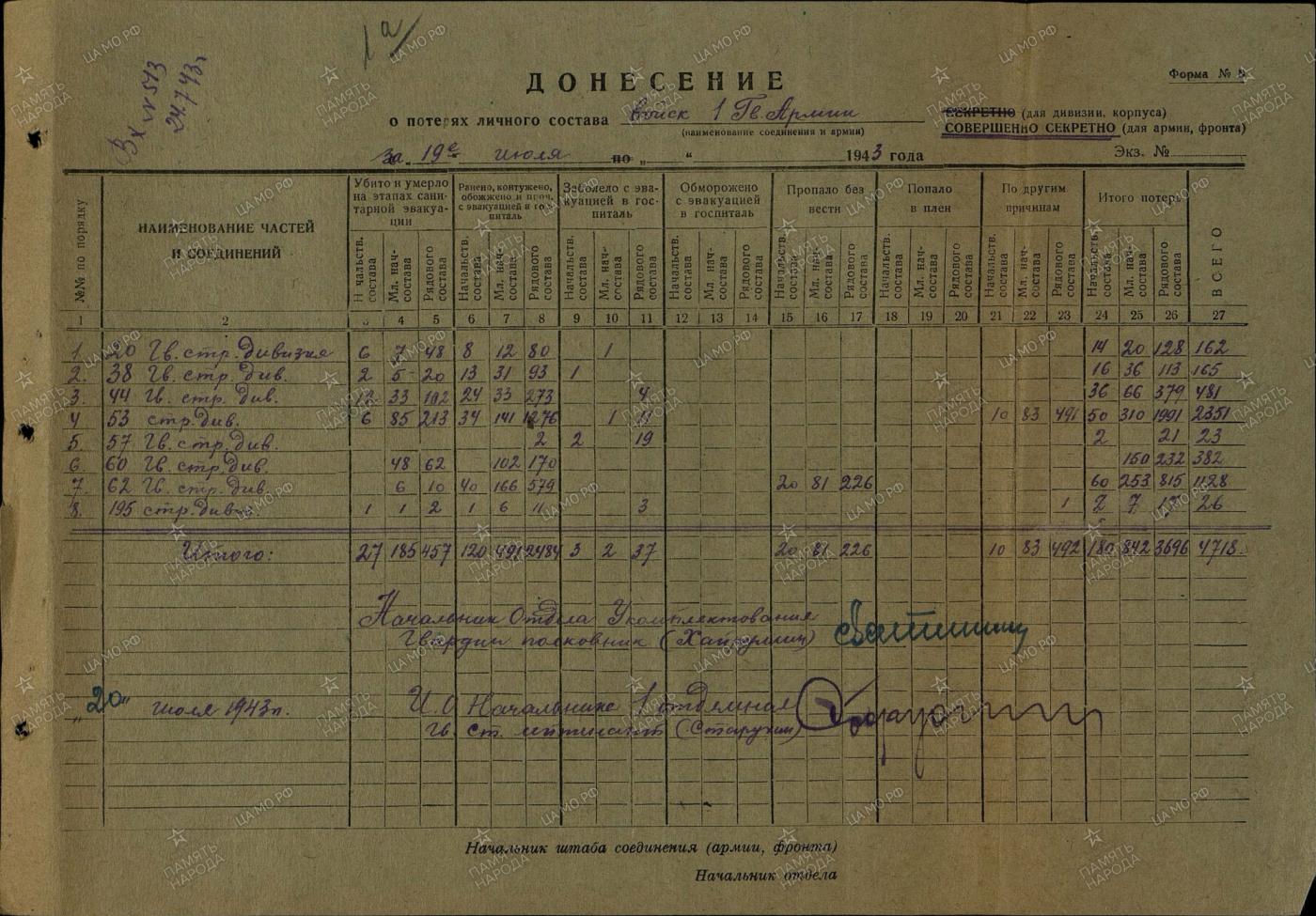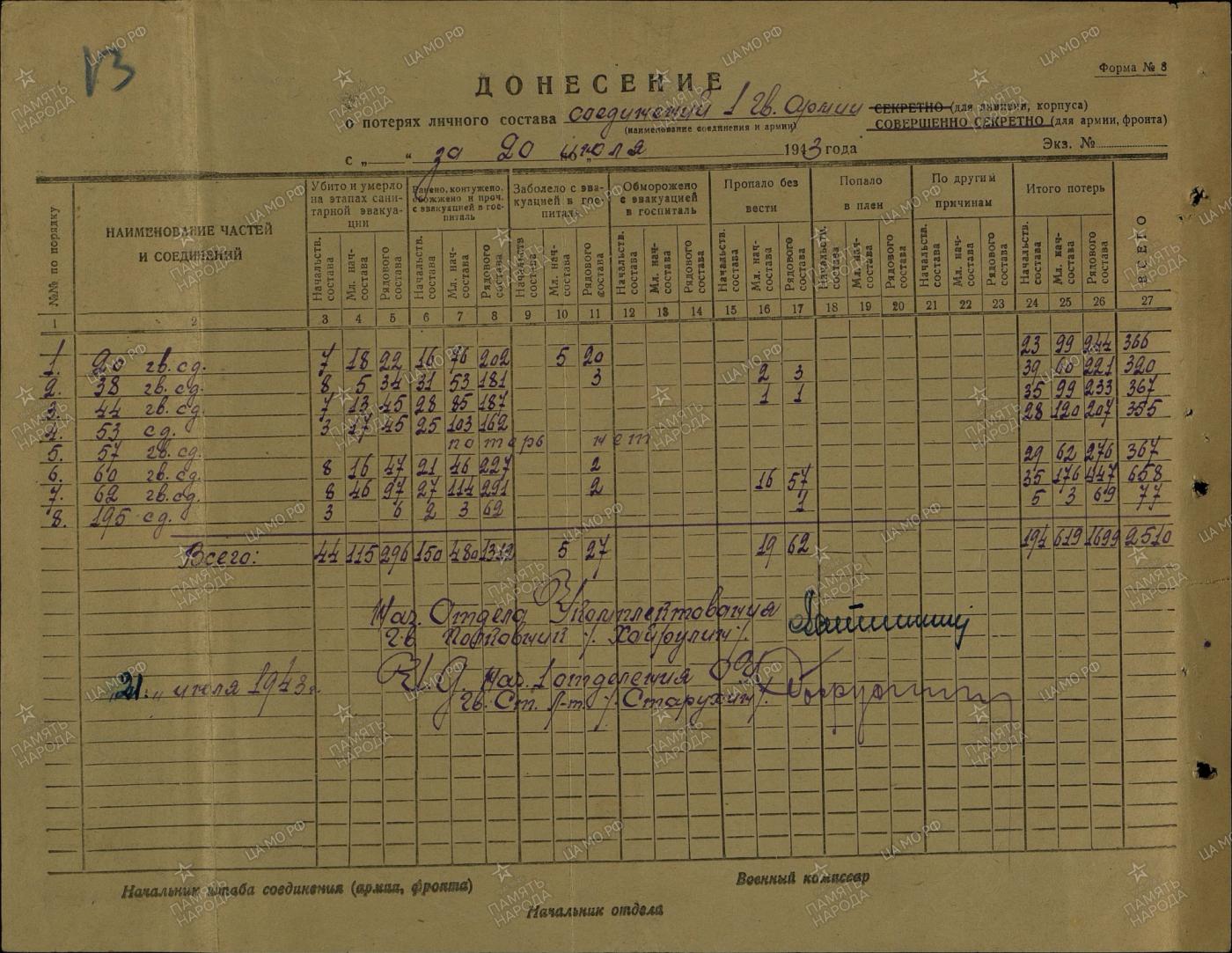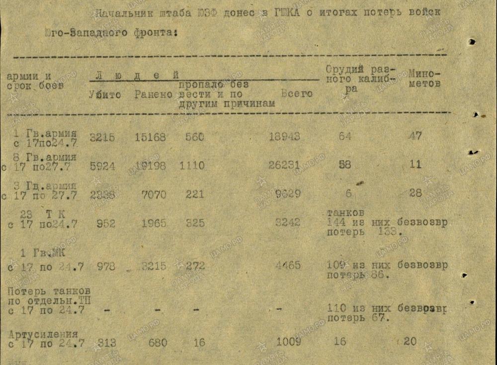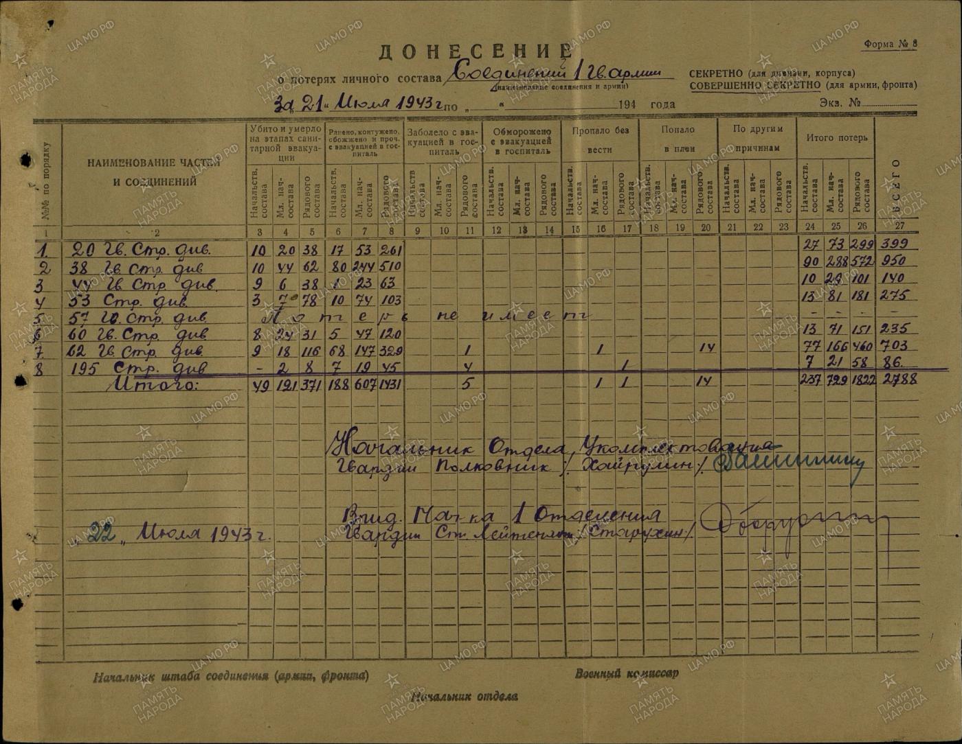 1. kaardiväe armee kaotused 19.-21. juuli 1943.a.