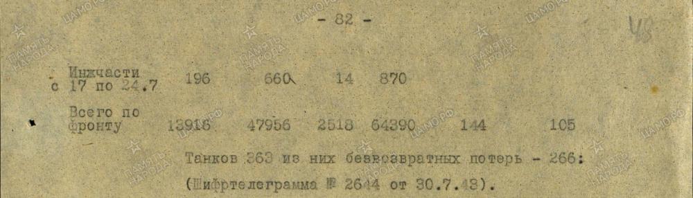 6.) Spätere Übergabe des Abschnittes an 257.Inf.Div. wird XXXX. Pz.Korps zeitgerecht befahlen, jedoch noch nicht in der Nacht. 20./21.7.