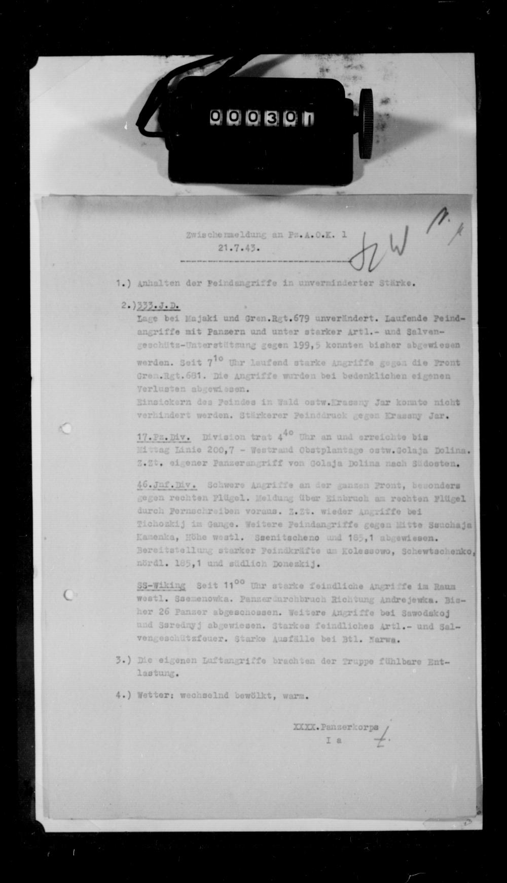 2.) Zu diesem Zeitpunkt übernimmt Kdr. SS-Pz.Gren.Div.Wiking unmittelbar unter XXXX. Pz.Korps den Befehl im gesamten Abschnitt des Korps.
