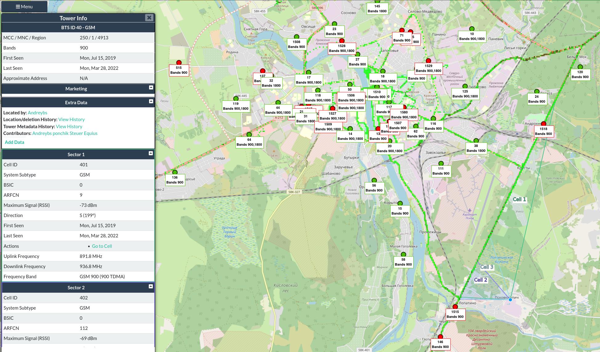 Jutt sai alguse droonide navigeerimisest, et sina hakkasid vahepeal jutustama sellest, kuidas operaator oma võrgus olevat seadet positsioneerib on "teine teema". Ja et lugupeetav mingit tehnilist lahendust ette ei suuda kujutada, et muuda seda lahendust olematuks :) Jutt sama sageduse peale segadusse sattumisest näitab tehnoloogia mittemõistmist. Eelnevalt juba kirjutasin, et igal saatjal on oma ID, teada on antennide saatesektorid, jne. Kas seda lahendust kasutati või ei, pole antud juhul oluline, kirjeldasin võimalust kõrvuti teiste navigeerimismeetoditega. Panen siis juurde pildi Pihkva ümbruses ainult ühe operaatori 2G tugijaamadest, 4G pilt on tihedam, lisaks teised operaatorid.