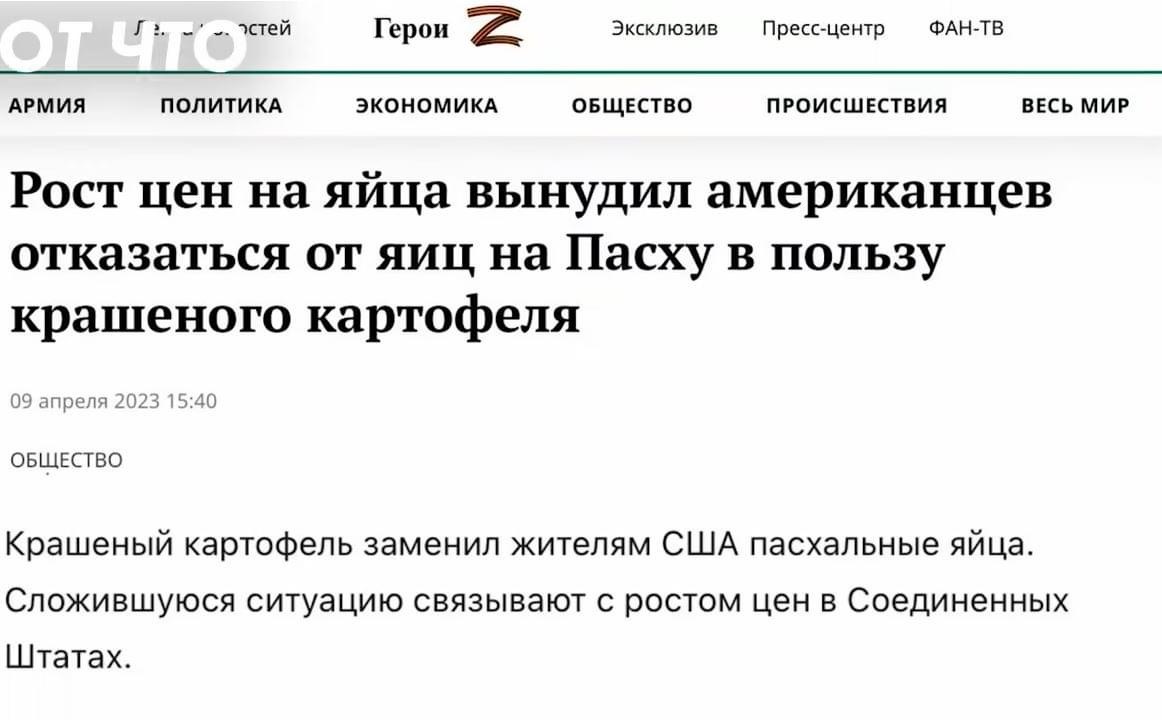 Moskoovia uudised räägivad, et Meerika elu läinud puha pahaks - munade hinnad nii kõrged, et jänkid värvivad pühademunade asemel kartuleid:
