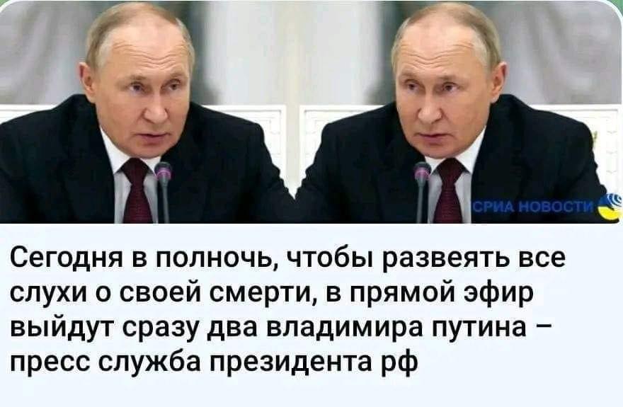 Et hajutada kahtlusi oma surmast,esineb täna keskööl otse-eetris lausa kaks Putinit...