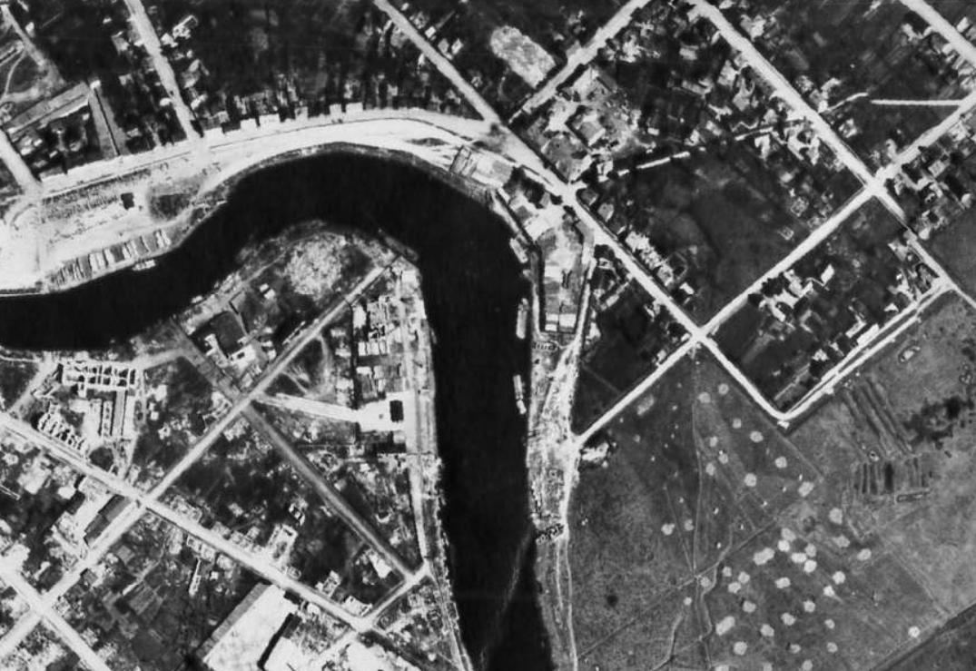 Foto peaks olema 40-te aastate lõpust, võimalik, et kõige tagumine kogu ongi see saksa praam, aga kui jah, siis tundub, et hiljem lohistati ta mõnikümmend meetrit ülesvoolu. Millisest näoraamatust pilt näppu juhtus, ei oska enam tagantjärgi öelda.