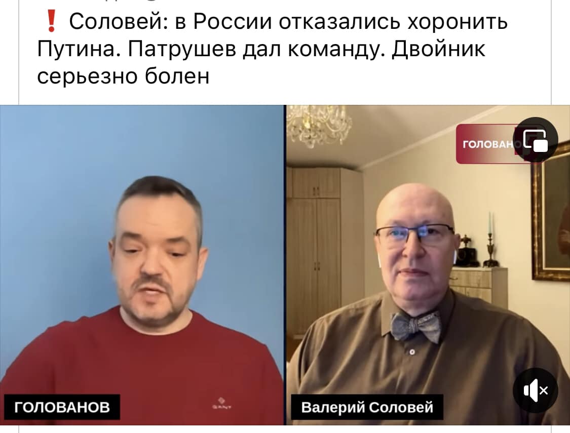 Solovei teab tõsimeeli pajatada, et nüüd olla ka putini teisik raskelt haige. Jätan igaks juhuks siia rubriiki. :)