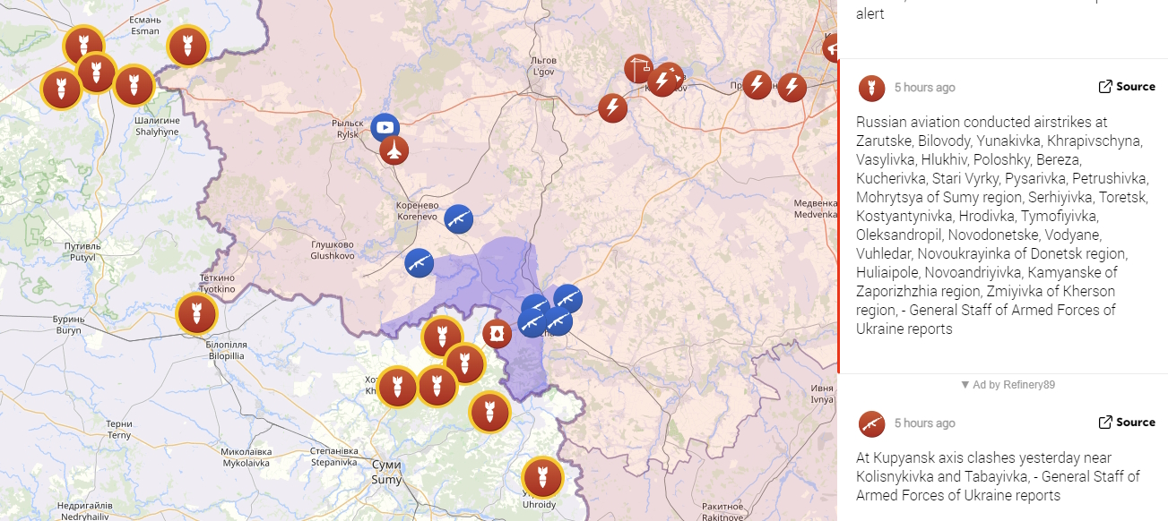 Alehin:Näib, et vaenlane on otsustanud Suja ja Korenevo linnalahingutega mitte tegelda ja püüab neid ümber lüüa. Seni ei ole neil see õnnestunud. See, mida esitatakse Suja piiramisena ja Martõnovka vallutamisena, on väikeste manöövriüksuste tegevus, mis hüppavad välja küladesse viivatel teedel ja annavad märku oma kohalolekust. Põhijõud ei järgi neid veel, nagu juhtus 2022. aastal Harkivi piirkonnas.