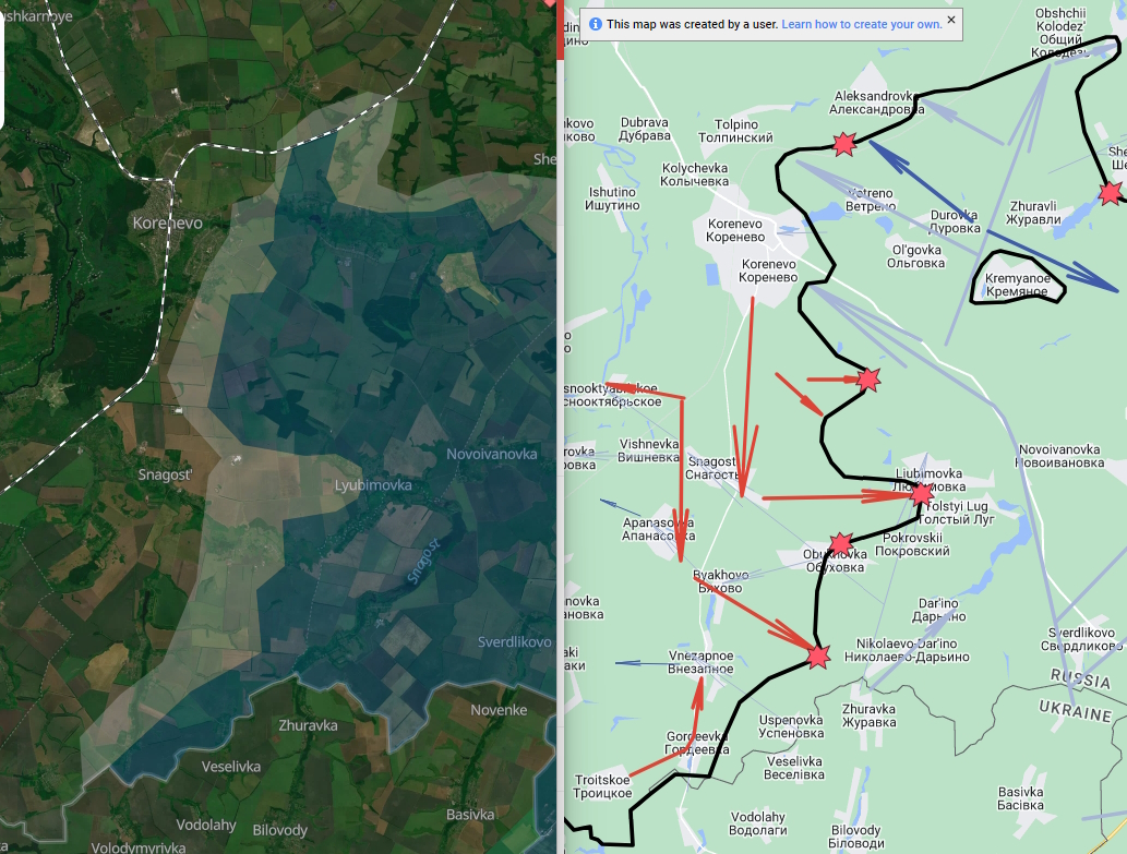 Kurski oblastis on venelased nii Ljubimovkas põhjas kui lõunas täiendavat edu saavutanud. Lõpuks on Korenevost lõunasse suunduv maantee vene armee käes ja sellest läänes Komarovka piirkonnas Ukraina kontrolli all olevaid alasid enam ei näidata - mis neist üksustest sai...?