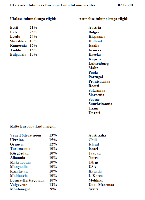 2010 koostatud ülevaade erineva maksusüsteemiga riikidest.