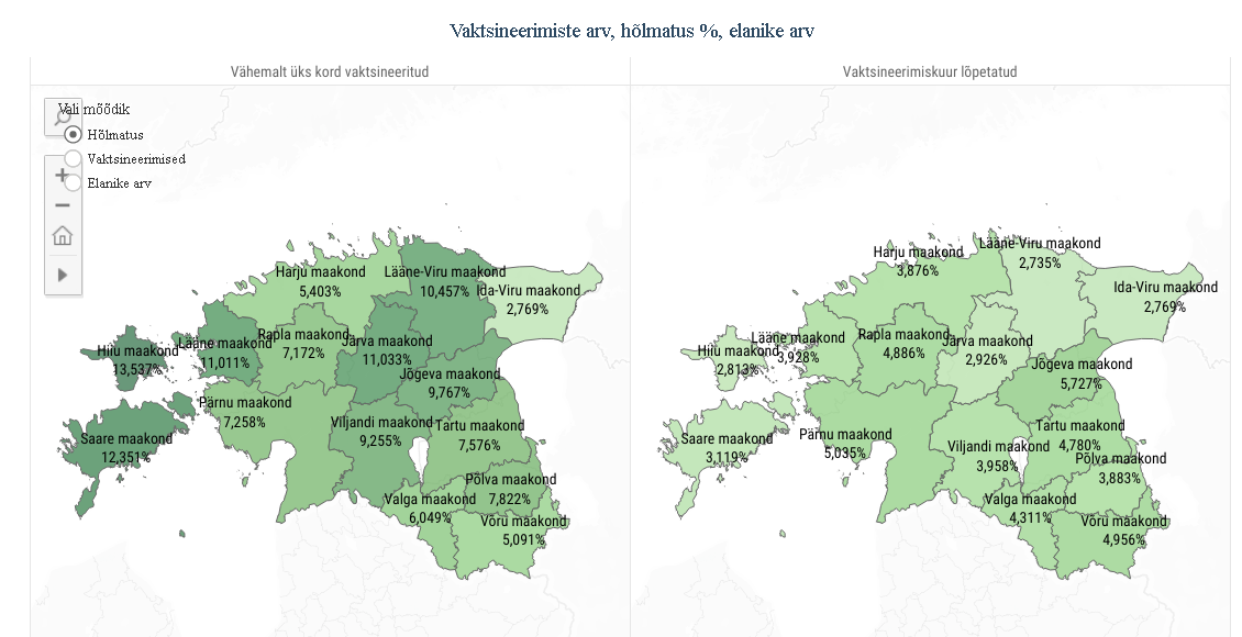 Ida-Viru % nii ühe kui kahe doosiga on sama