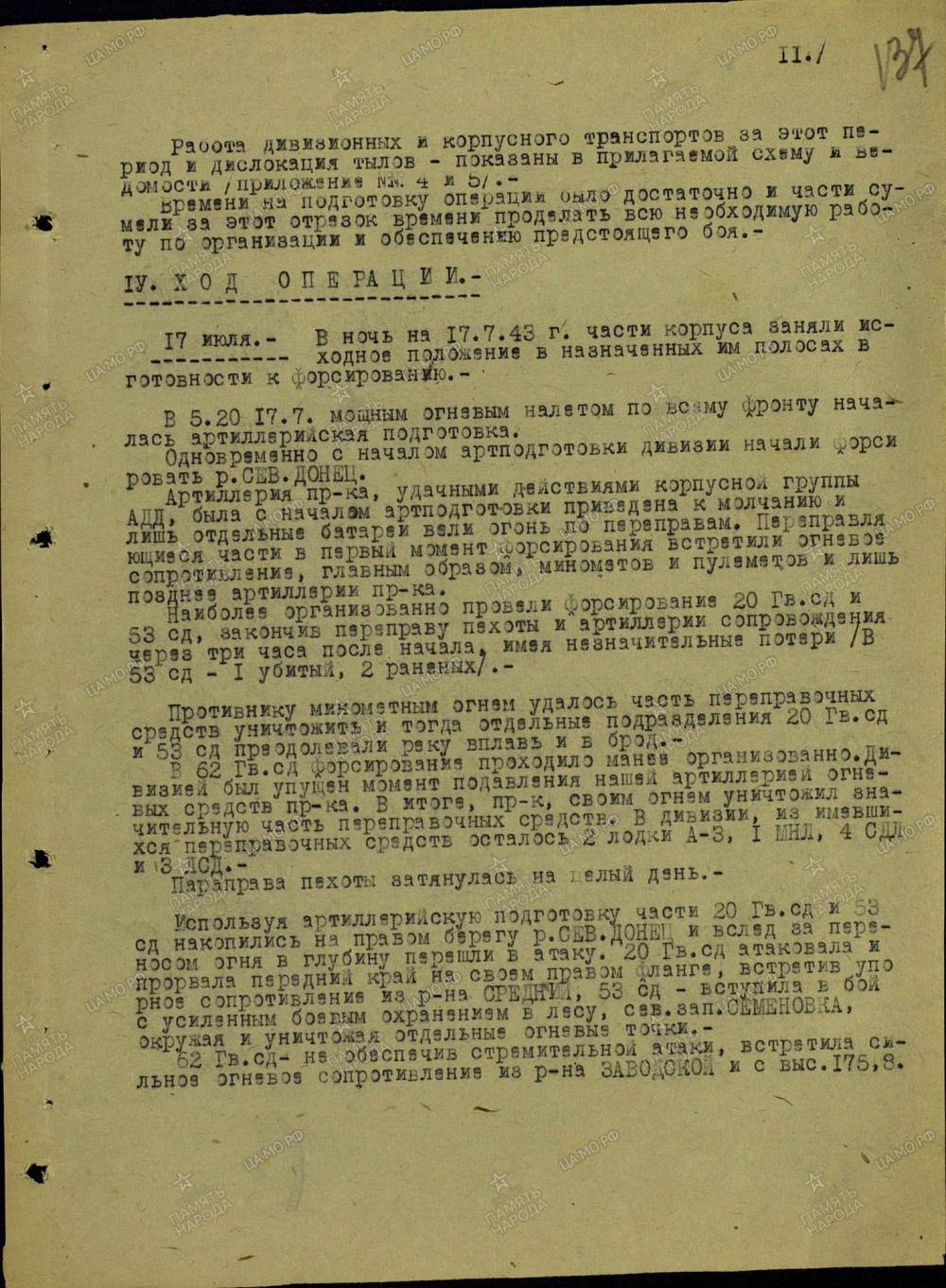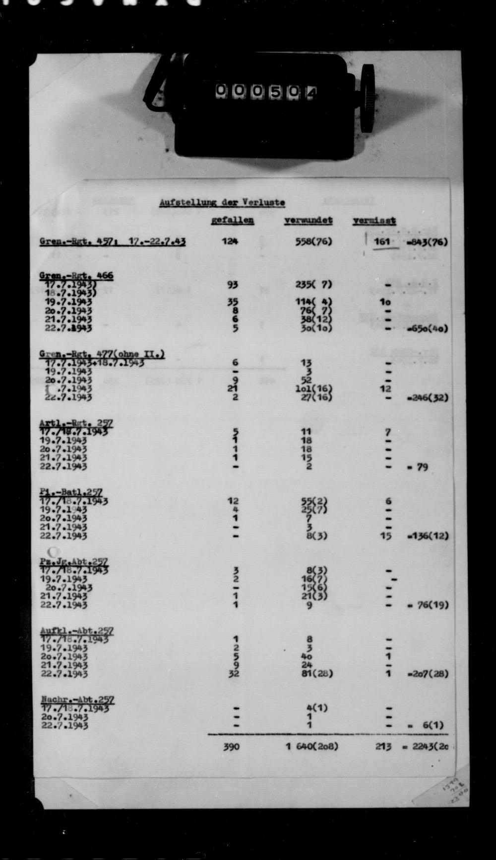 4. kaardiväe laskurkorpuse aruandest osa (TsAMO 345/5487/135)