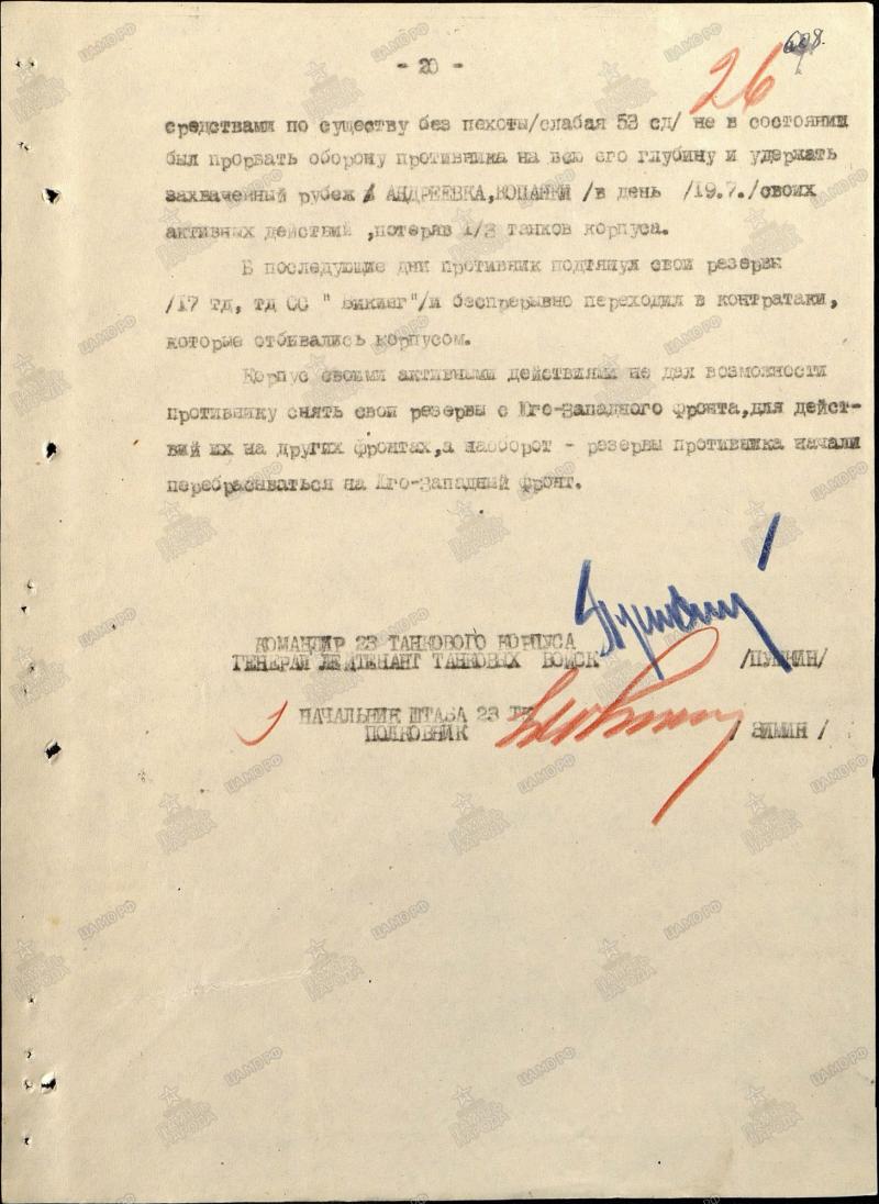 Nõukogude poolelt paistab asi lihtsam olema. Postitan 23. tankikorpuse aruande lahingutegevusest 17. kuni 23. juulini (osaliselt).