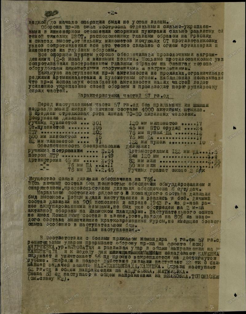 57. kaardiväe laskurdiviis on samuti ühe aruande kirjutanud. TsAMO 1176/1/15 (pamyat-naroda.ru)