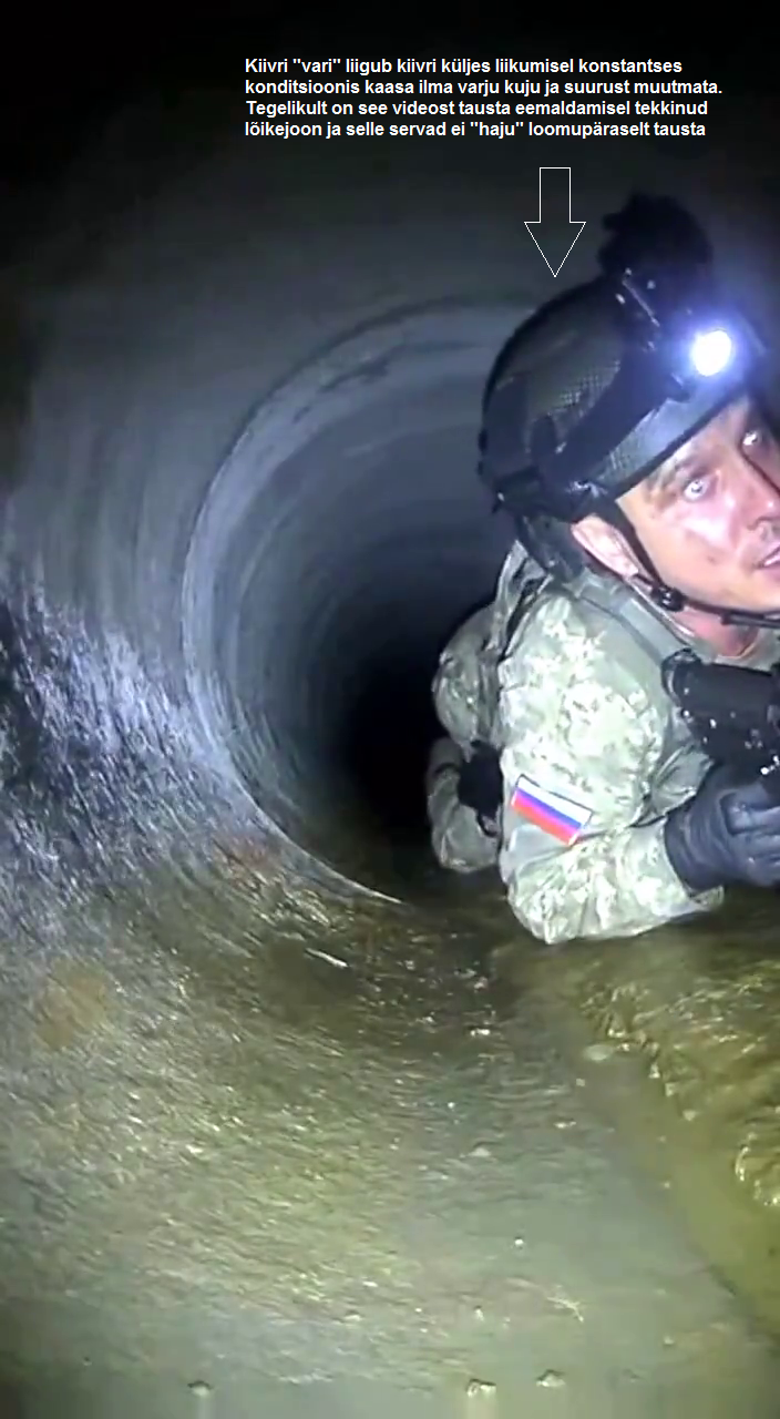Valgus, varjud, tekstuurid, see vees mööda hulpiv sodi, kõigepealt pimedusest ilmuvad helkivad silmad, sõduri pilk mis on suunatud õigele poole, kaameraliikumine, siga koos oma omadustega ja varjuga jne näeb kõik realistlik välja, eriti see, et siga püsib nii lähikaadris kus kaamera on vastu objekti veel täiesti loogilisena, miski ei viita hetkel AI'le. Tõsi, kaameranurk, situatsioon ise, ja see varukas on kahtlane. Aga see 'pask' seal torus ei pruugi üldse vedel ollagi, võib vabalt olla mingi "kaltsifitseerunud" jama seal toru põhjas.