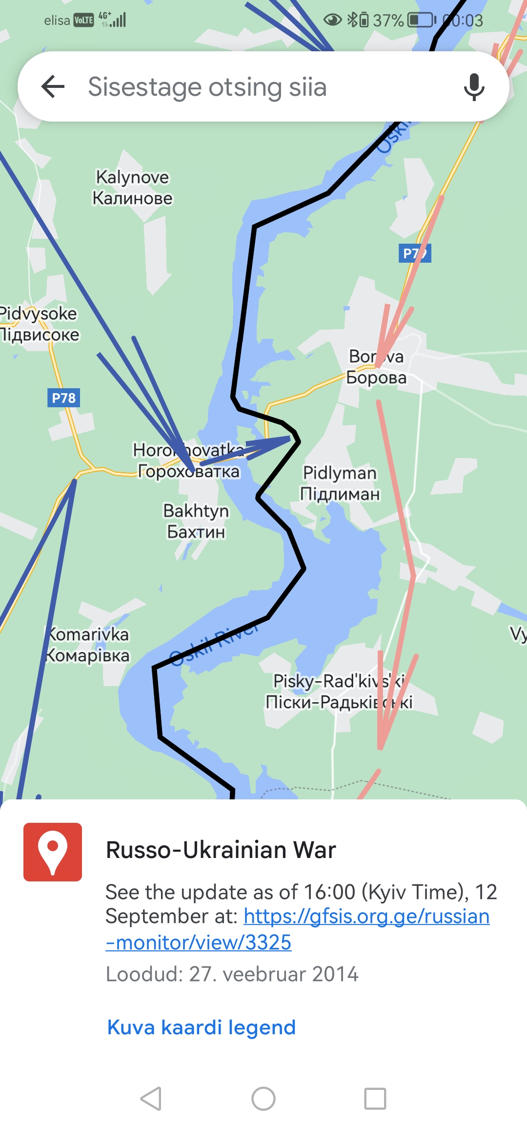 Eile märkisin ära, aga keegi ei tea, mis see on või kas see on. Säutse ka pole.speedsta kirjutas: ↑12 Sept, 2022 22:05Pole märganud, et siin oleks läbi käinud UA edasiliikumine Horlivka joonel: