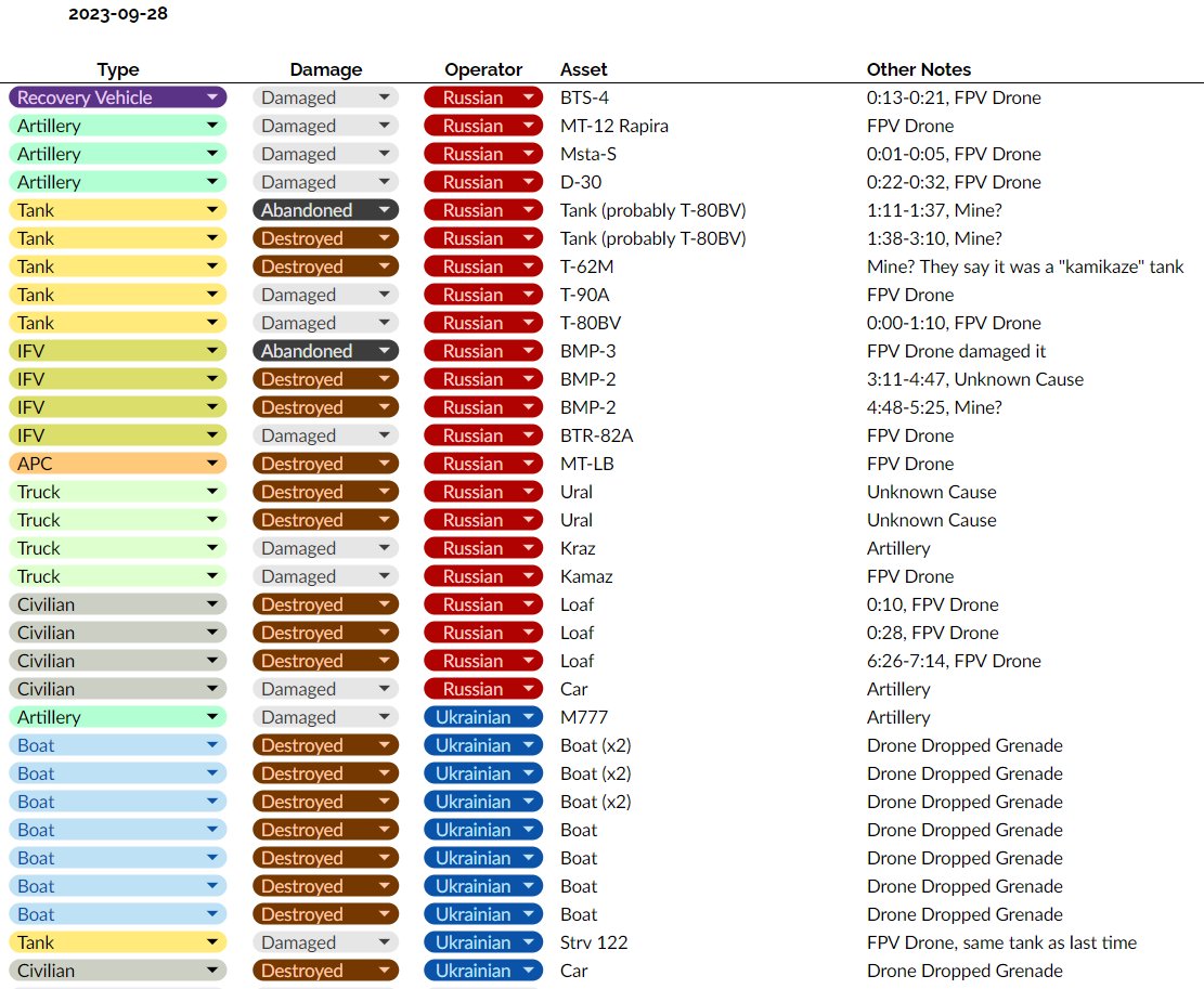 Selle loo taust on vist üks vatnikute totakas videokollaazh, mis 28nda paiku levima hakkas. Sisu on umbes selline, et droonidelt pommitatakse kuskil Dnepril erinevaid paate, mille otsene seos sõjategevusega on pigem kahtlane. Umbes 10nest paadist vaid ühel oli ka mingi mootor tuvastatav ja enamus nägid välja nagu kõige odavamad kohalike kalameeste kummipaadid suvaliselt kaldale vedelema jäetud.Kilo Tango kirjutas: ↑29 Sept, 2023 19:52 Huvitav, kus see kari paate pihta on saanud. Dnepril või Krimmi ja Odessa vahel?