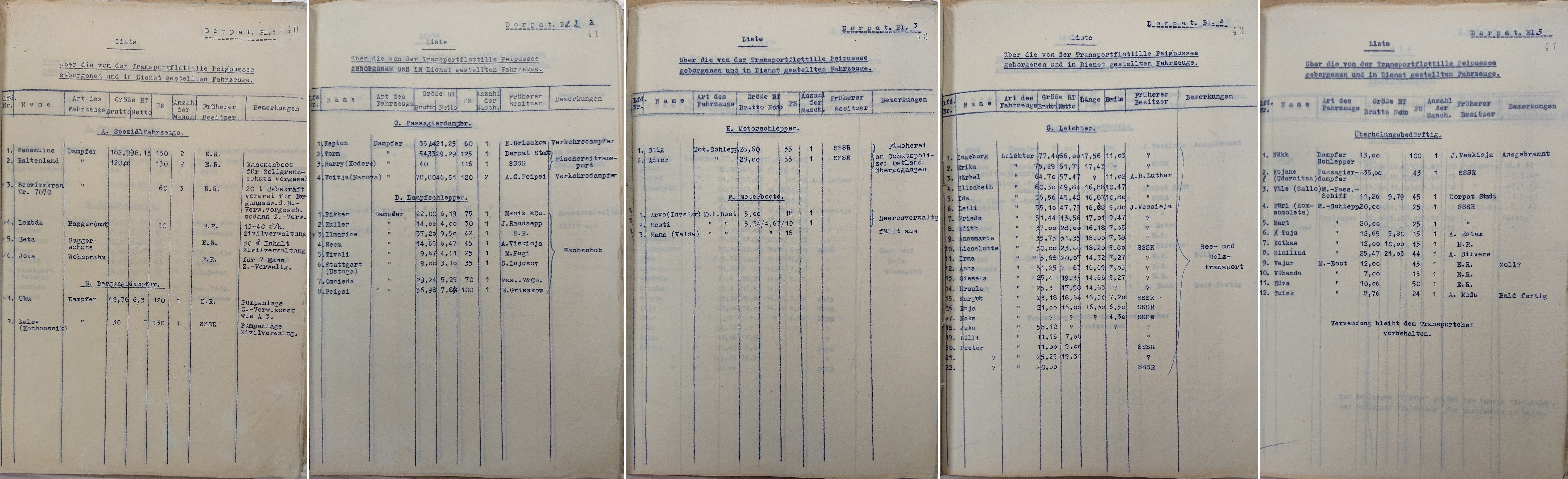 Lisatud RA-st leitud Tartu sadama jõelaevade loetelu seisuga 1942.a. kevad.