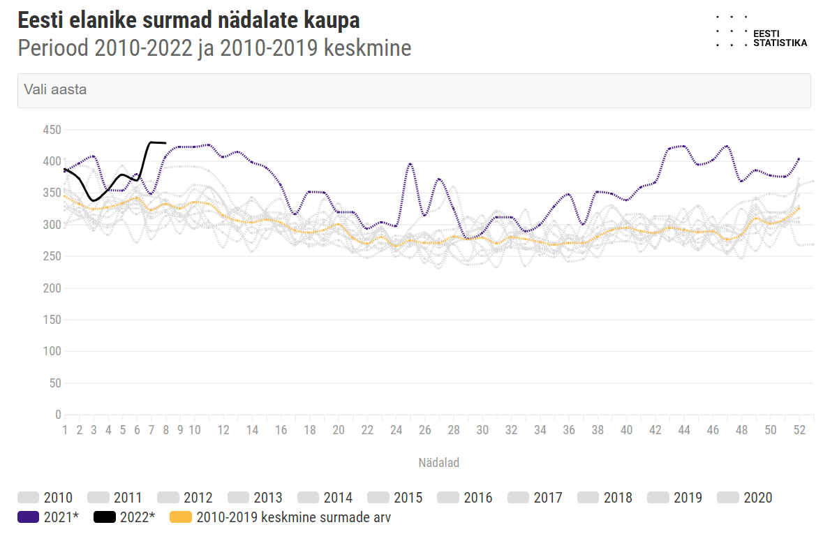 Viimaste päevade üle 10 koroonasurma päevas näitavad veel süngemat kogusuremust kui eelmisel aastal.