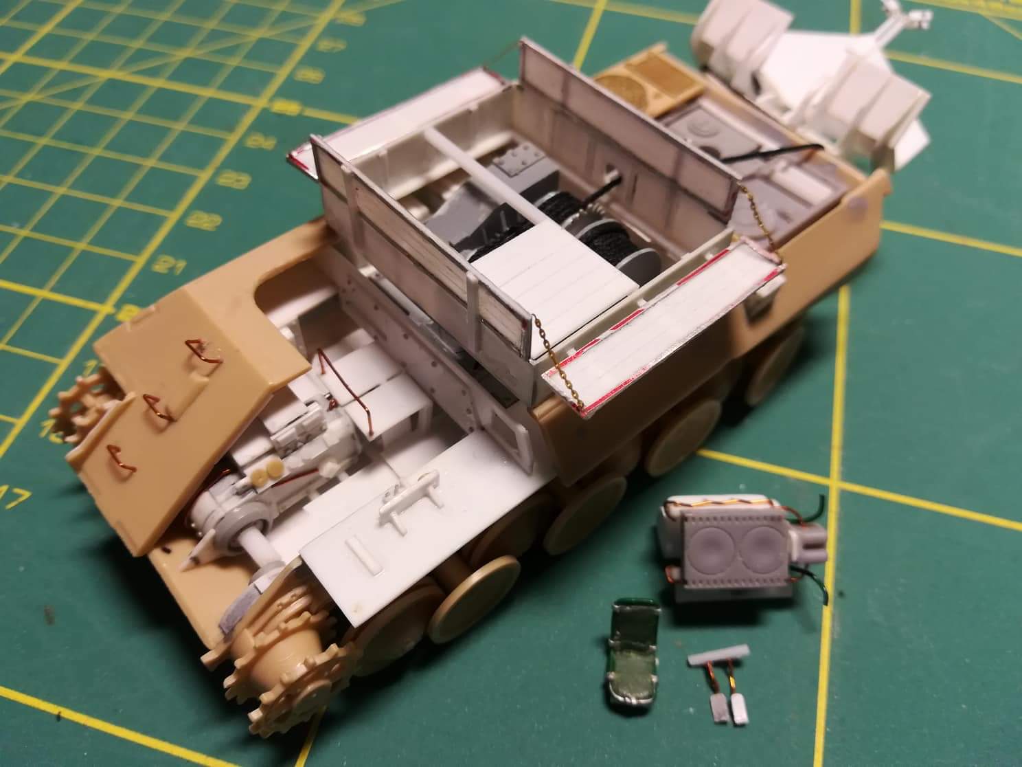 Siiamaani lõpetamata, eks vaja veel kraana, tööriistade rackid ja mg mountid ehitada. Hetkel vints vaid kooku keritud et hoiaks sahka üleval, muidu pärast kinnitan kõik ilusti kettidega