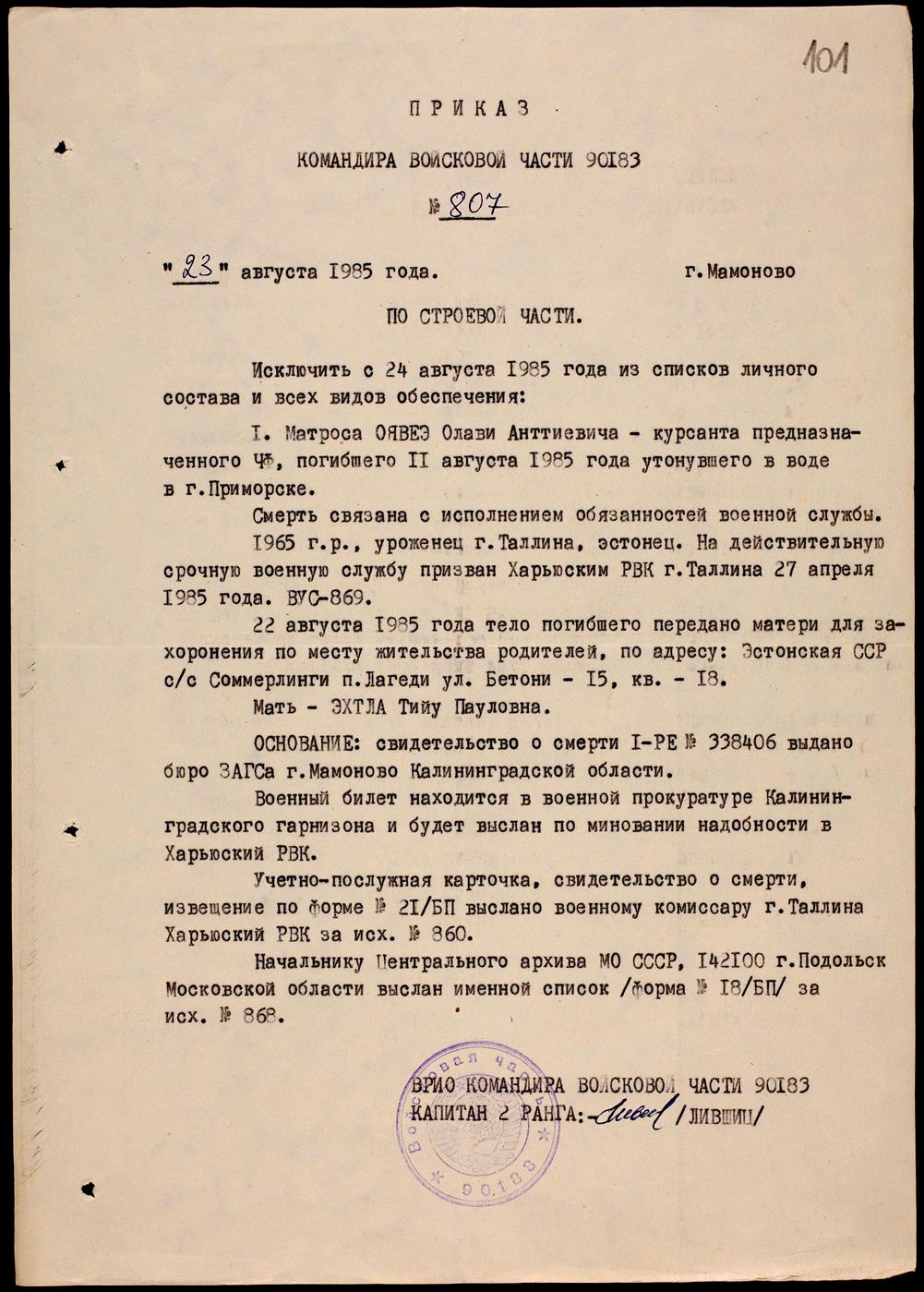 Ametlik surma põhjus: uppumine teenistusülesannete täitmisel