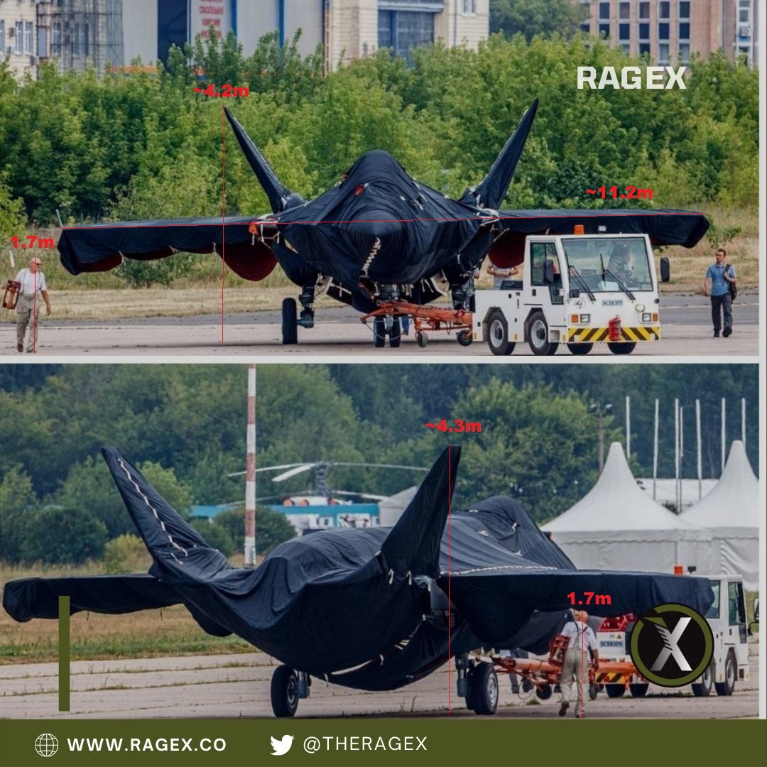 Lihtsalt huvipärast otsisin, et kui suur see lennuk võiks olla, kuid ei leidnud ühtegi kindlat allikat. Seetõttu otsustasin fotode pealt arvutada. Pole kõige täpsem, kuid annab ligikaudse ettekujutuse. Põhimõtteliselt peaks olema sarnane F-35 mõõtmetega, võib-olla natuke suurem.