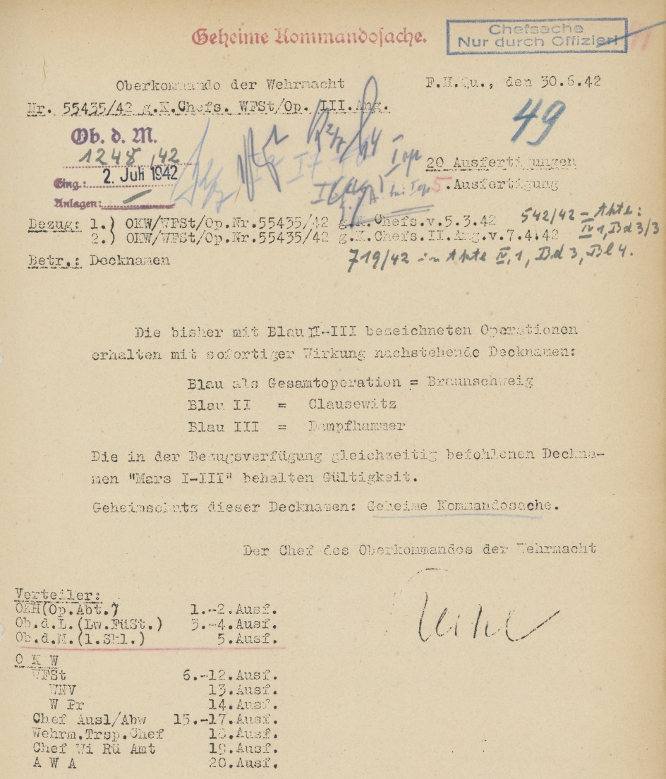 Ei tea, miks seda operatsiooniks "Blau" nimetatakse? Mingi ajutiselt kasutusel olnud kattenime järgi?