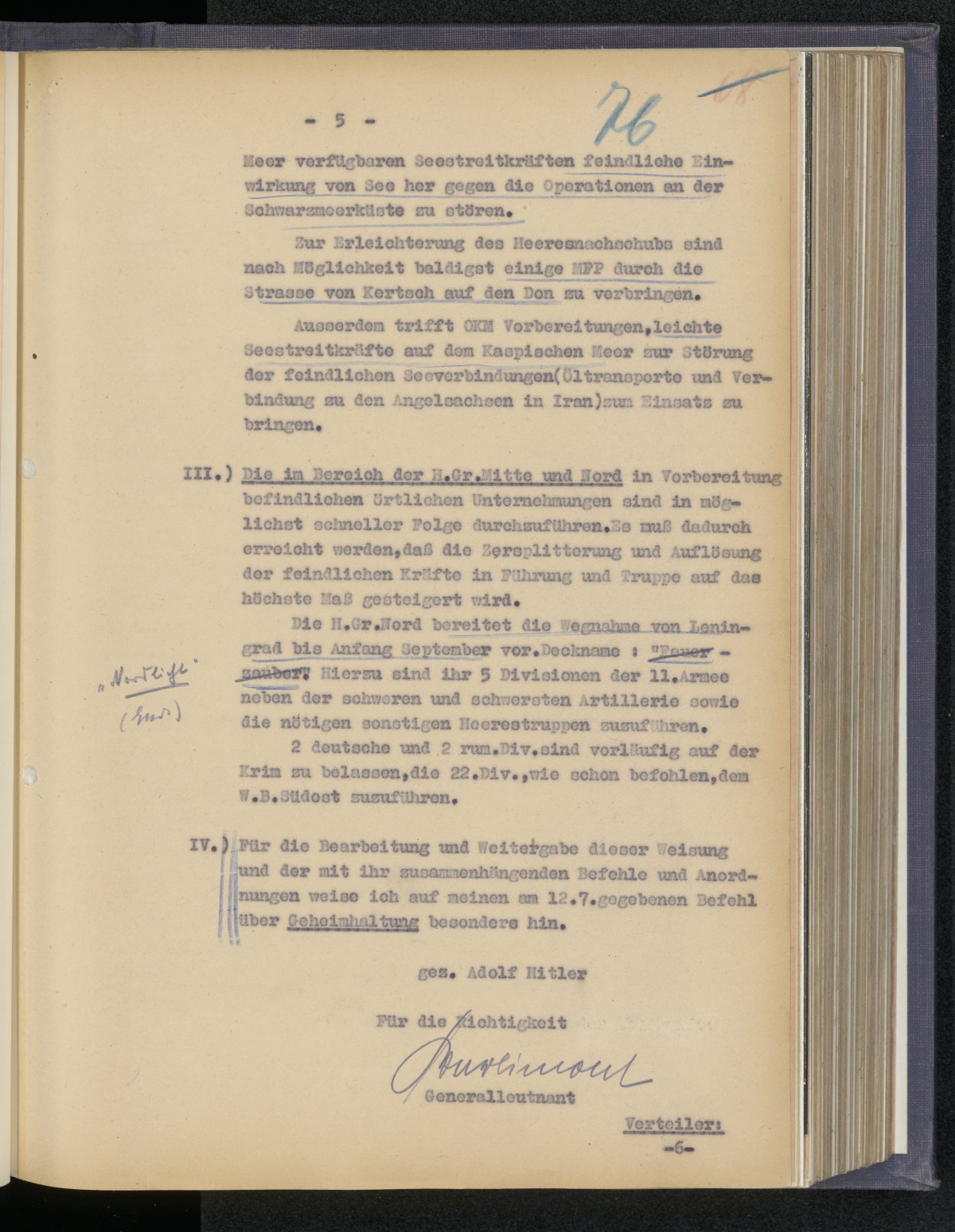 Võib-olla mõjutasid ülemjuhatuse otsust Krimmis vabanenud väed (vt. Weisung 43)?Nüüd selgelt vastast alahindav ülemjuhatus leidis nähtavasti, et 6. armeele on vaja uusi väljakutseid, et sõduritel igav ei hakkaks,