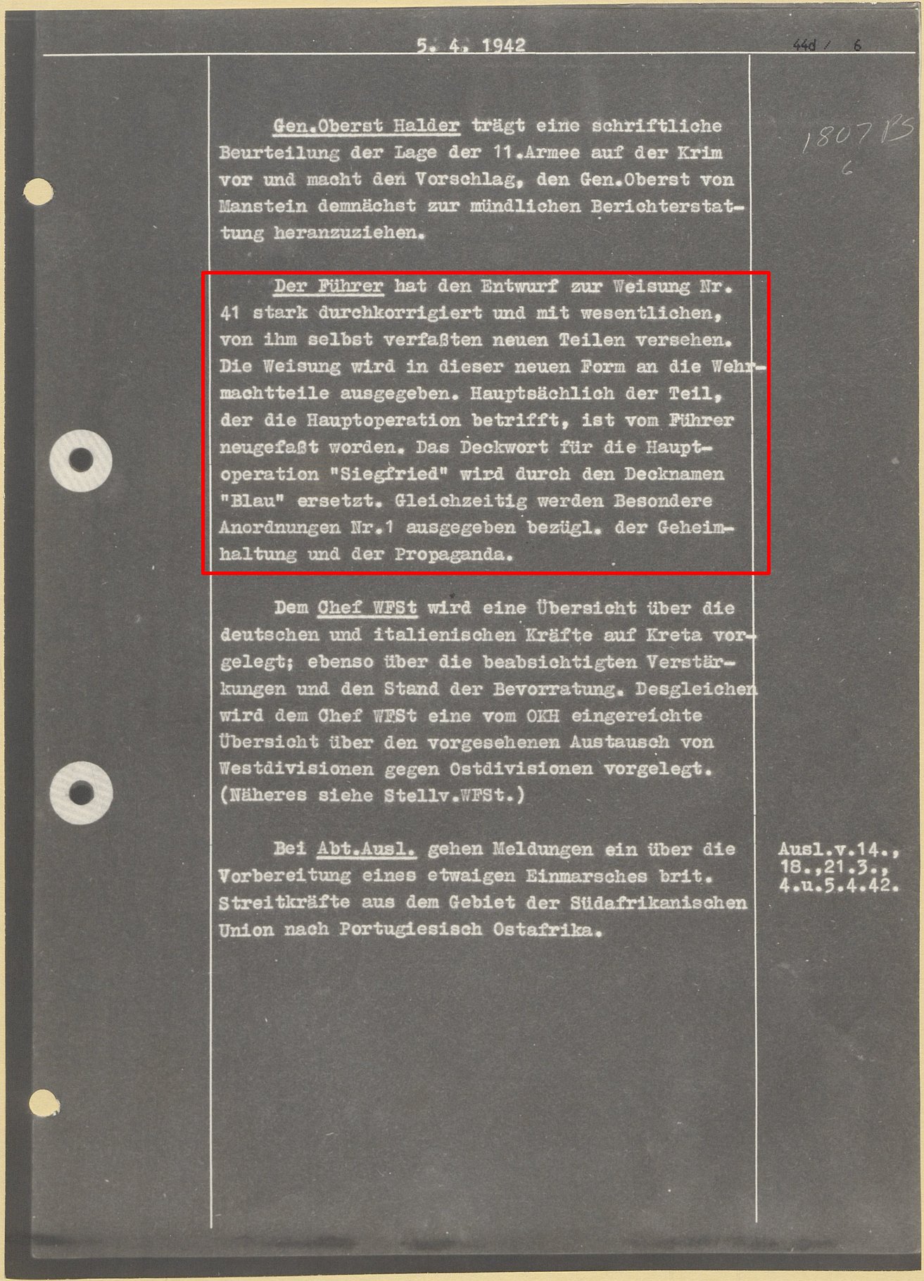 Minu poolt siis Weisung 45 siia. Paneme tähele, et ülemjuhatus ei jaganud ülesandeid armeedele vaid väegruppidele ja õhu- ning mereväele.