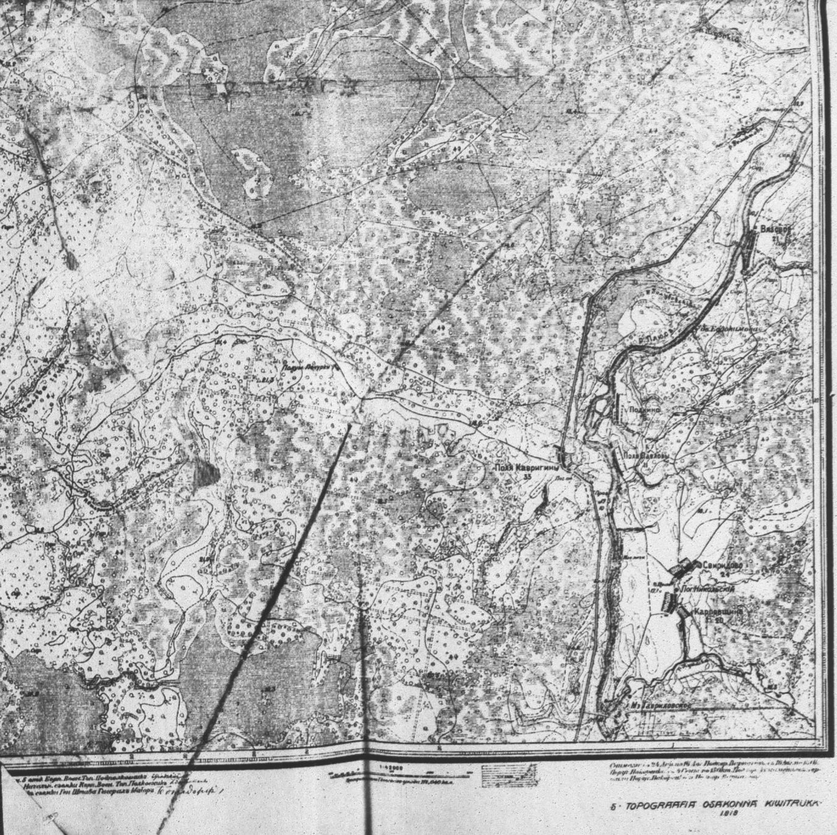 viimatinimetatud kaardid puudusid, saadi kontuurjooned ja reljeefi kõrgusjooned 1:42 000-lt kaardilt, teed ja
