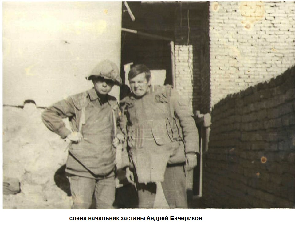 Бачериков Андрей Владимирович oli 1. motolaskurpataljoni 1.tanktõrjerühma (птв; СПГ-9) 8-nda kordoni/valvetõkke/valveposti (8-я сводная застава) komandör.