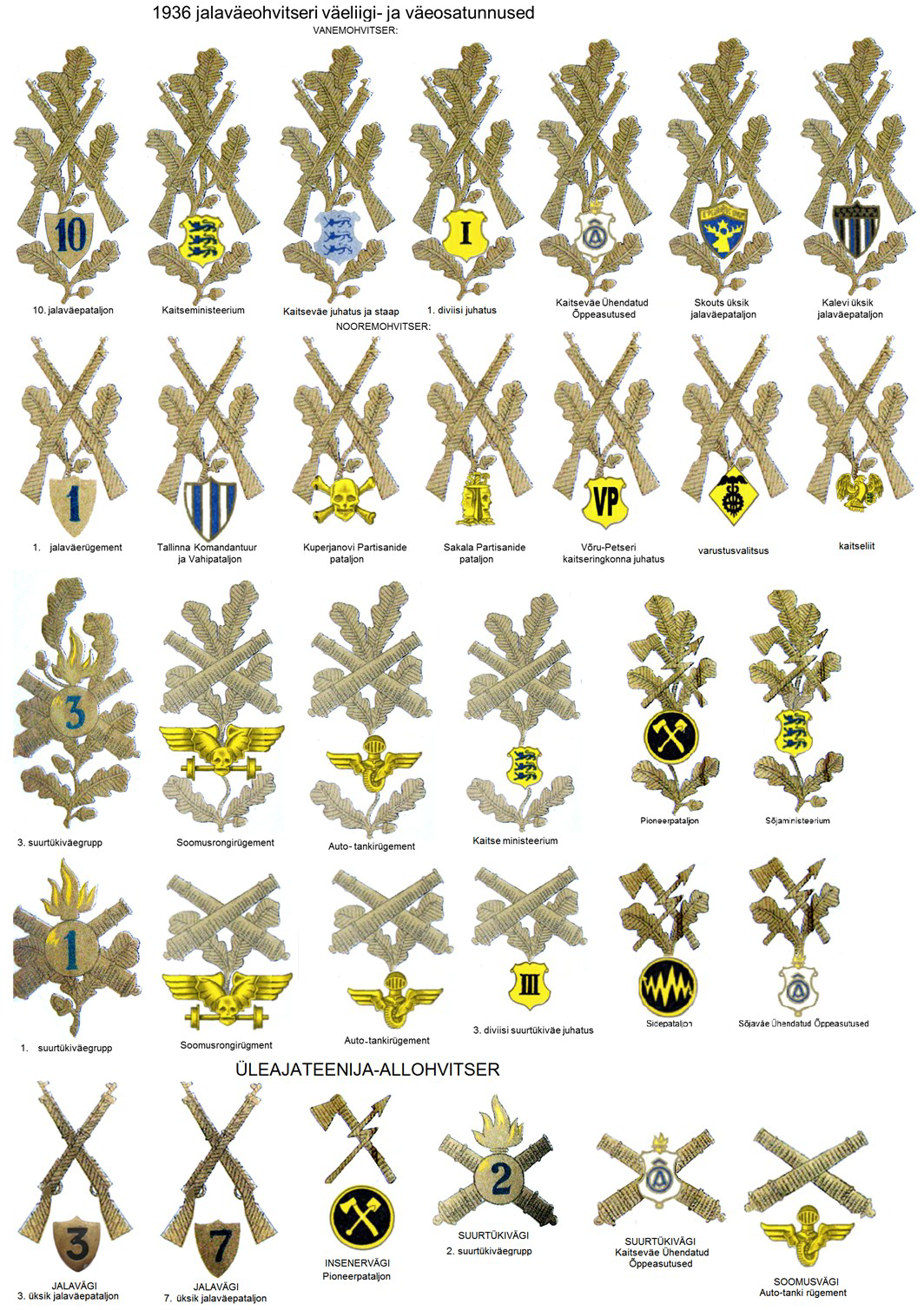 Lisatud pildil on näha vanem- ja nooremohvitseride ning kaadriallohvitseride tunnuste erinevused.