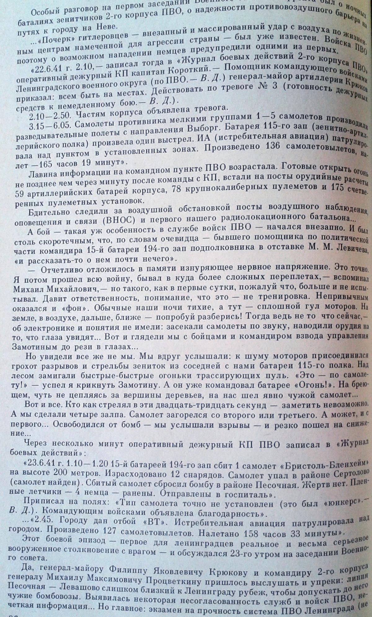 Põhjarinde ÕJ juhataja A. A. Novikov: „/.../ Linna jõudis sõda kell 3 hommikul, kui leningradlased alles sügavalt magasid. Sellel ajal kihutasid kõrgel taevas üheksa hävitajat, keda juhtis vanemleitnant Mihhail Gneušev. Veel kakskümmend minutit hiljem puhkes Leningradi taevas esimene õhulahing – hävituslendurid Šavrov ja Boiko astusid lahingusse Me-110 lüliga. Kell 4 hommikul püüdsid 12 Saksa lennukit mineerida faarvaatrit Soome lahes, kuid aeti mereväelendurite poolt minema. Veidi hiljem üritasid 14 Me-110 rünnata meie lennuvälja Viiburi juures. Vaenlase võttis vastu ja ajas minema grupp 7. HLP lendureid vanemleitnant Nikolai Svitenko juhtimisel.“