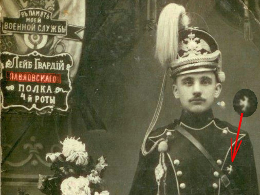 See teema on pisut komplitseeritud küll ja mustvalge foto põhjal pisut raskesti lahendatav. Eelpool pakutud ihukaardiväe Pavlovski polgu kahjuks räägib asjaolu, et alamväelased ei kandnud õlakul Nikolai II monogrammi. Ka ihukaardiväe 4. Imperaatorliku perekonna laskurpataljonis ei kantud seda, kui uskuda sellist väljaannet - "Tablitsõ form obmundirovanija Russkoj Armii" 1910 a .
