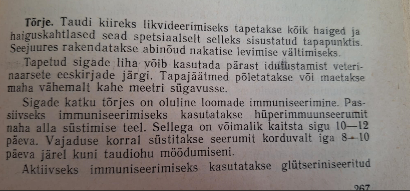 Isegi kui Nurme farmis ei ilmne sigadel kunagi haigustunnuseid, ei tunnista riik ehk põllumajandus- ja toiduamet neid enam terveks ning peale hädatapu ei ole sigala töö jätkumiseks ühtegi võimalust. "Sigade Aafrika katku tõrjel sellist võimalust, et sead tunnistatakse terveks, ei ole,” nentis põllumajandus- ja toiduameti (PTA) loomatervise juhtivspetsialist Anne-Ly Veetamm Nurme farmi olukorda kommenteerides. Tema seletusel tugineb kogu rahvusvaheline bioturvalisuse- ja tõrjepoliitika katku puhul eeldusele, et viirus jääb karjas ja farmiruumis püsima teadmata ajaks. Seal olevaid loomi ei tohi laudast välja viia ega toiduks tappa. Uute sigade farmi toomine ei ole võimalik enne lauda põhjalikku ning mitmekordset puhastamist ja desinfitseerimist. "Ainult selliselt saab olla kindel, et nakkus farmis on hävitatud," selgitas Veetamm. "Puhastamist ja desinfitseerimist ei ole võimalik teha, kui laudas on sead."