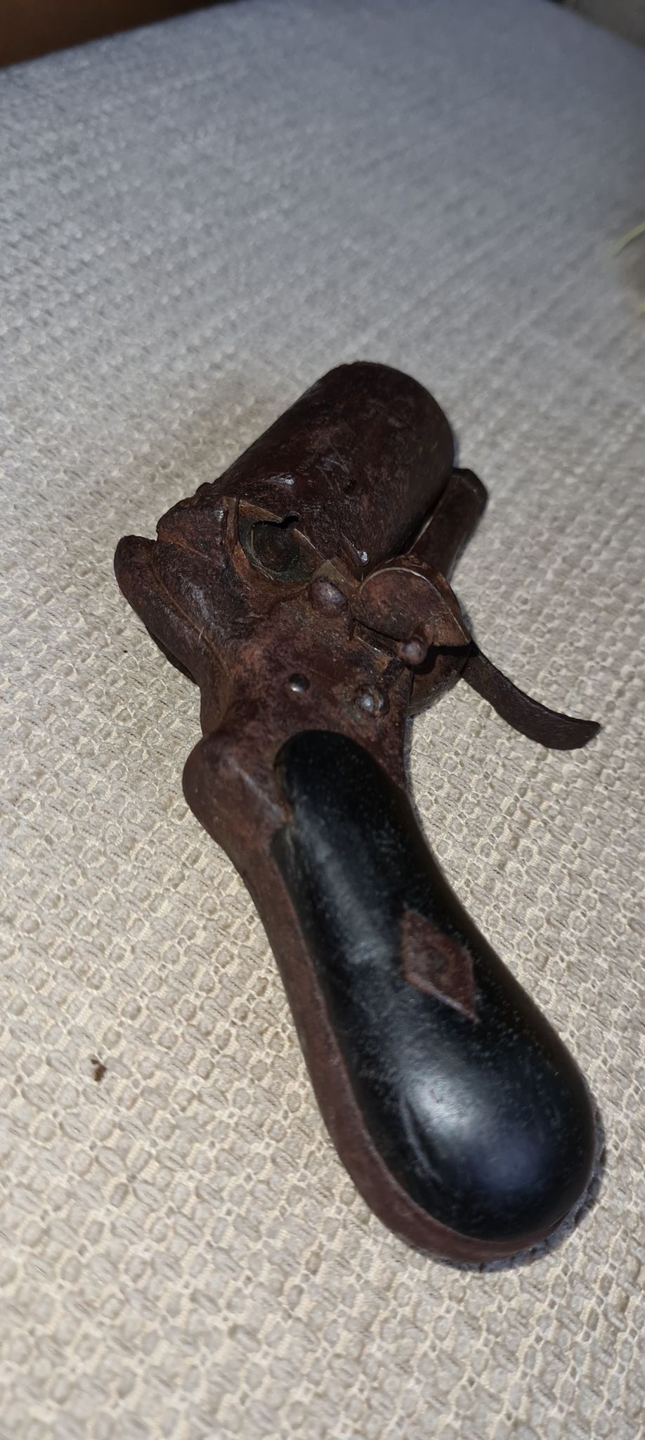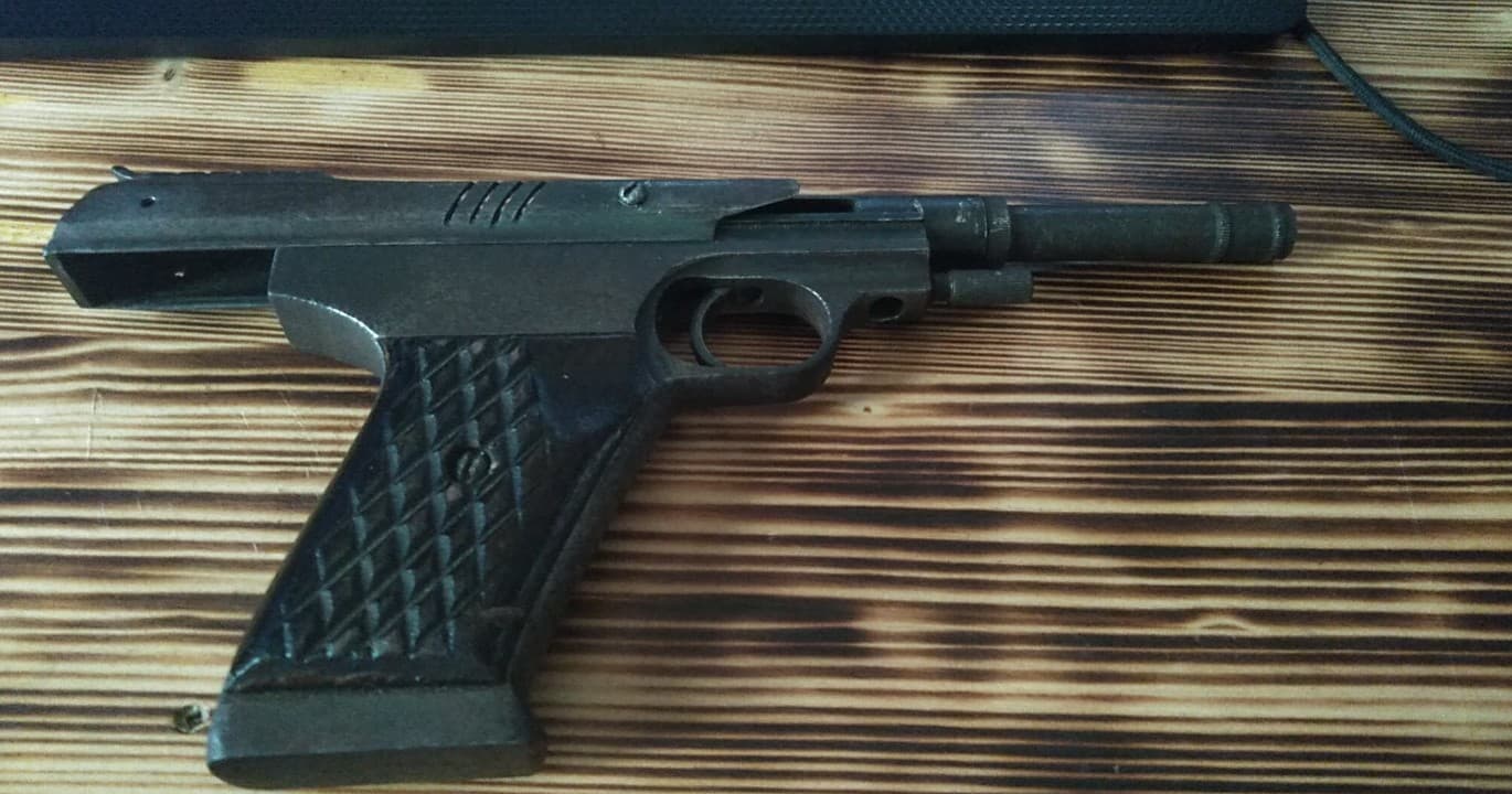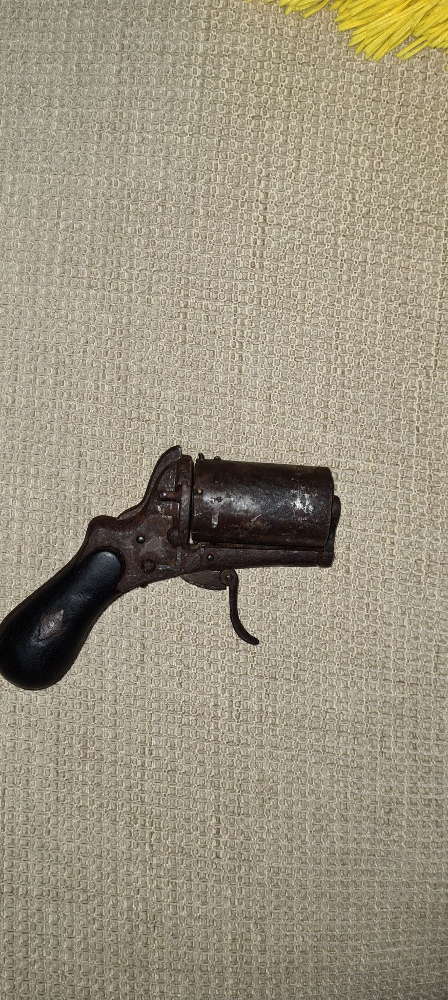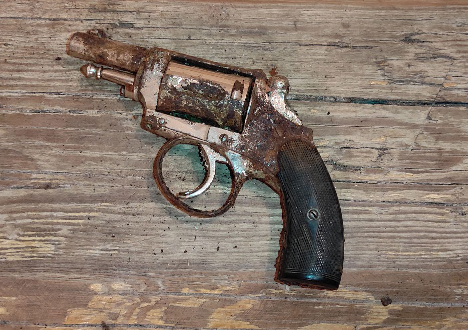 Ilus pipratoosi-revolver, kunagine populaarne enesekaitserelv. Kutsuge politsei ning saate pärast endale mälestuseks jätta. Ise relva politseisse viia ei tohi.