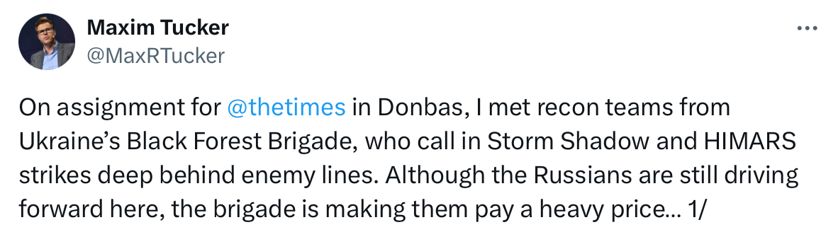 The Times on Ukrainas ja ajakirjanik Maxim Tucker postitab X -is infot UAV-dega varustatud brigaadi luureüksusest, mis juhib ATACMS-eid ja Storm Shadoweid sihtmärkideni. Kasutavad brittide droonimudelit https://www.tekever.com/models/ar3/