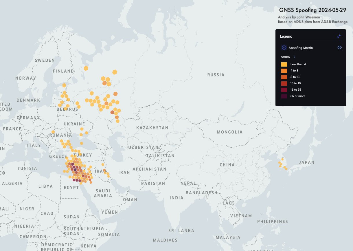 Kõige suurema veaga/valeandmete ettesöötmisega spoofimine toimub Israeli (ja Küprose) kohal.