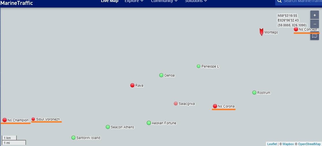 Seoses sellega on ehk huvitav teada, et hetkel seisab NS Champion ankrus Käsmu-Pärispea traaversil, Eesti majandusvööndis, 10 NM Purekkari neemest põhja pool.