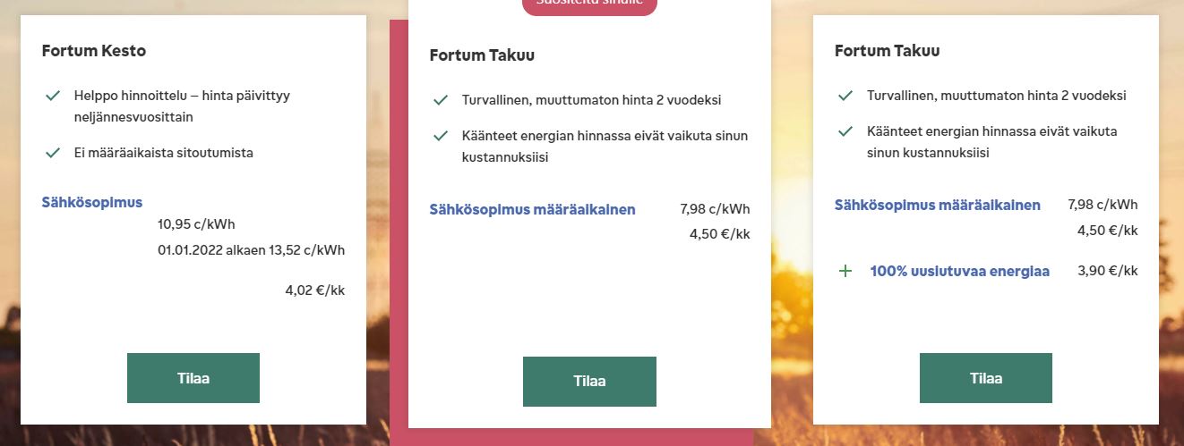 Soome elektrihindade taseme täna lepingut sõlmides saab teada näiteks siit: https://www.fortum.fi/kotiasiakkaille/sahkoa-kotiin/sahkosopimukset