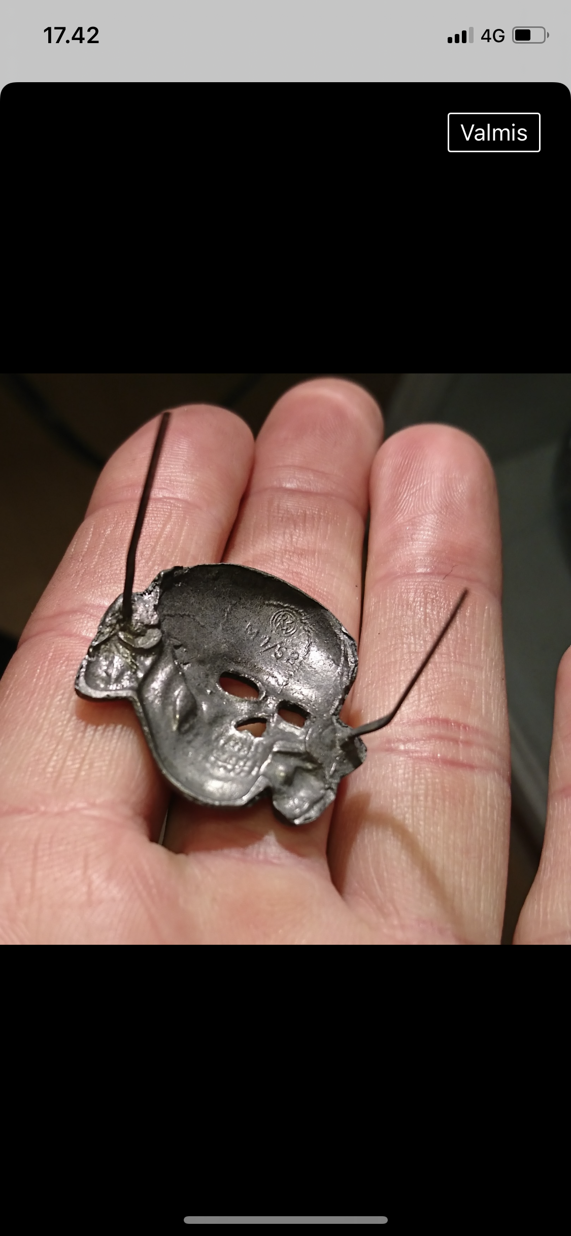 Kuna müts ise originaal pole, siis vaevalt et märgidki, mis külge pandud, seda on.