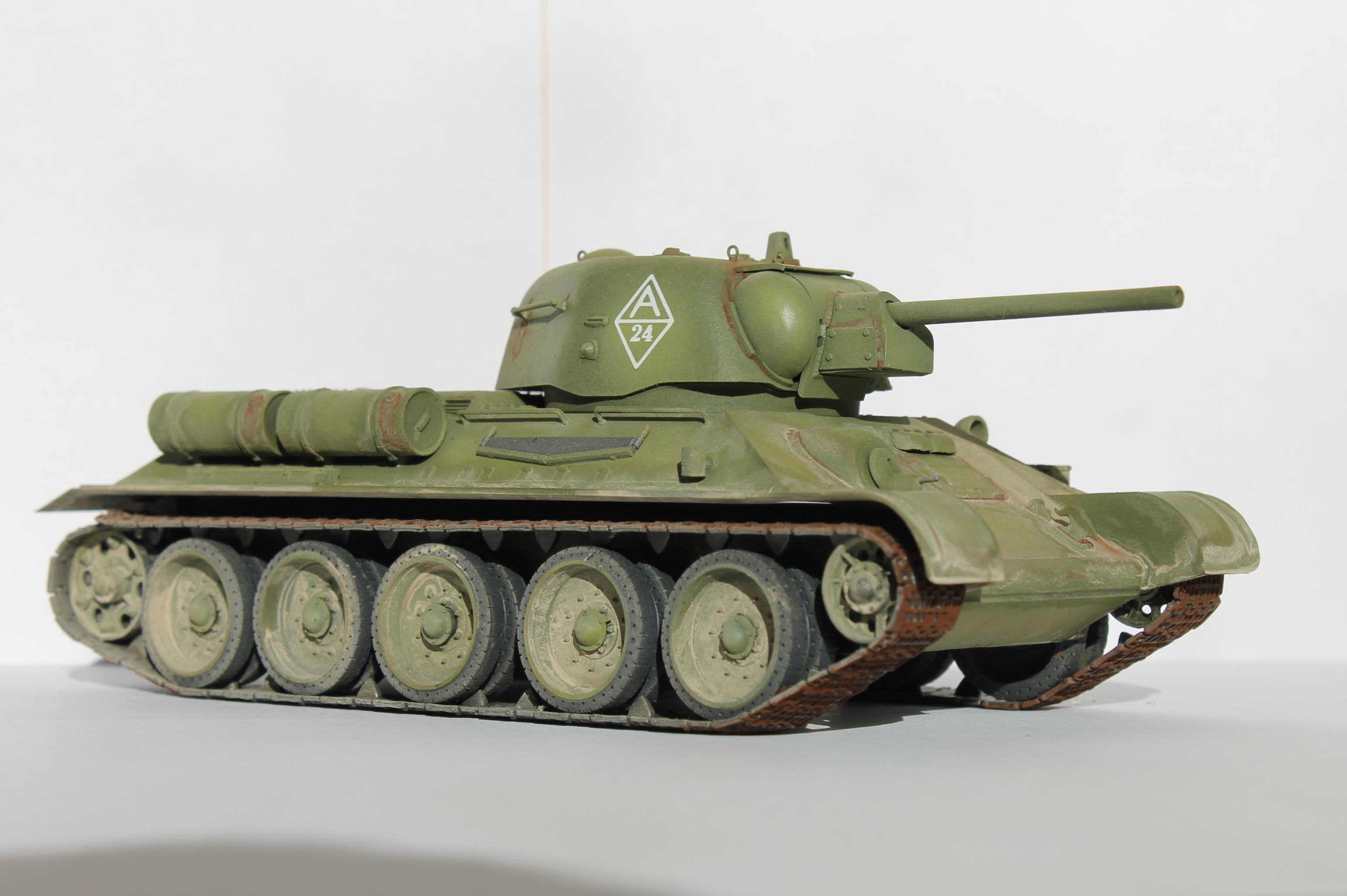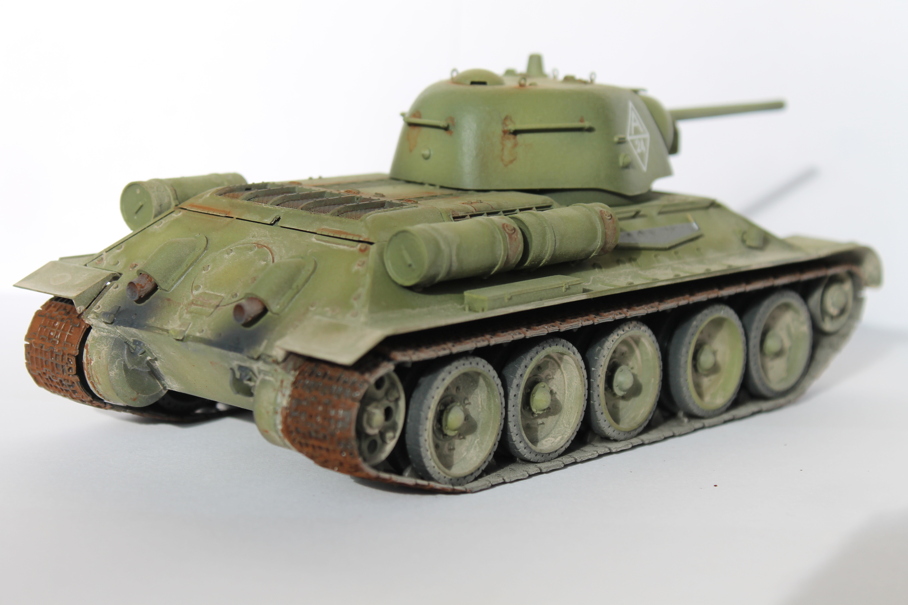 ei no T-34 näeb täitsa hea välja. aga autorile soovitus kummipaela osas: et need saab CA-liimiga (superatak and shit) rataste külge kinni liimida. siis näeb vähe elutruum välja. rooste osa kattis fossiil ära, aga soovin täpsustada, et pesu ei tohi olla mitle lihtsalt nagu mustmust - see ei mõju loomulikult - vaid ikka pigem mustjaspruun.