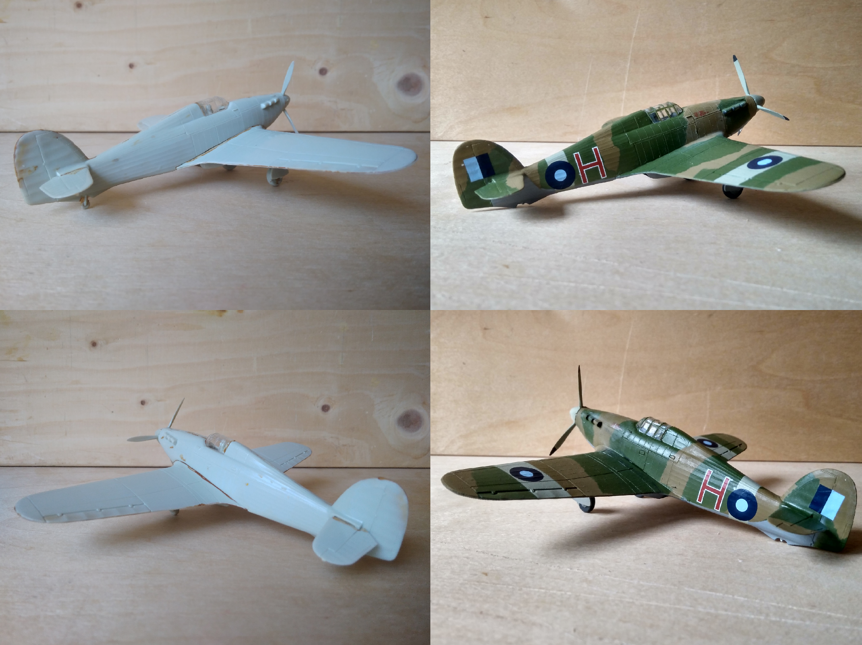 Võib olla on hoopiski viga selles, et olen enda jaoks leidnud vanade lennukimudelite nn. uuendamise. Ei oska hetkel peast öelda mitmes see on, aga näidis on siin (skaala 1/72) - Hawker Hurricane MK I. Valmis masinal puudub tagumine ratas, kuna mul kodus selline 4 aastane, kes salaja mängib sellega. Praeguseks on jälle ratas all.
