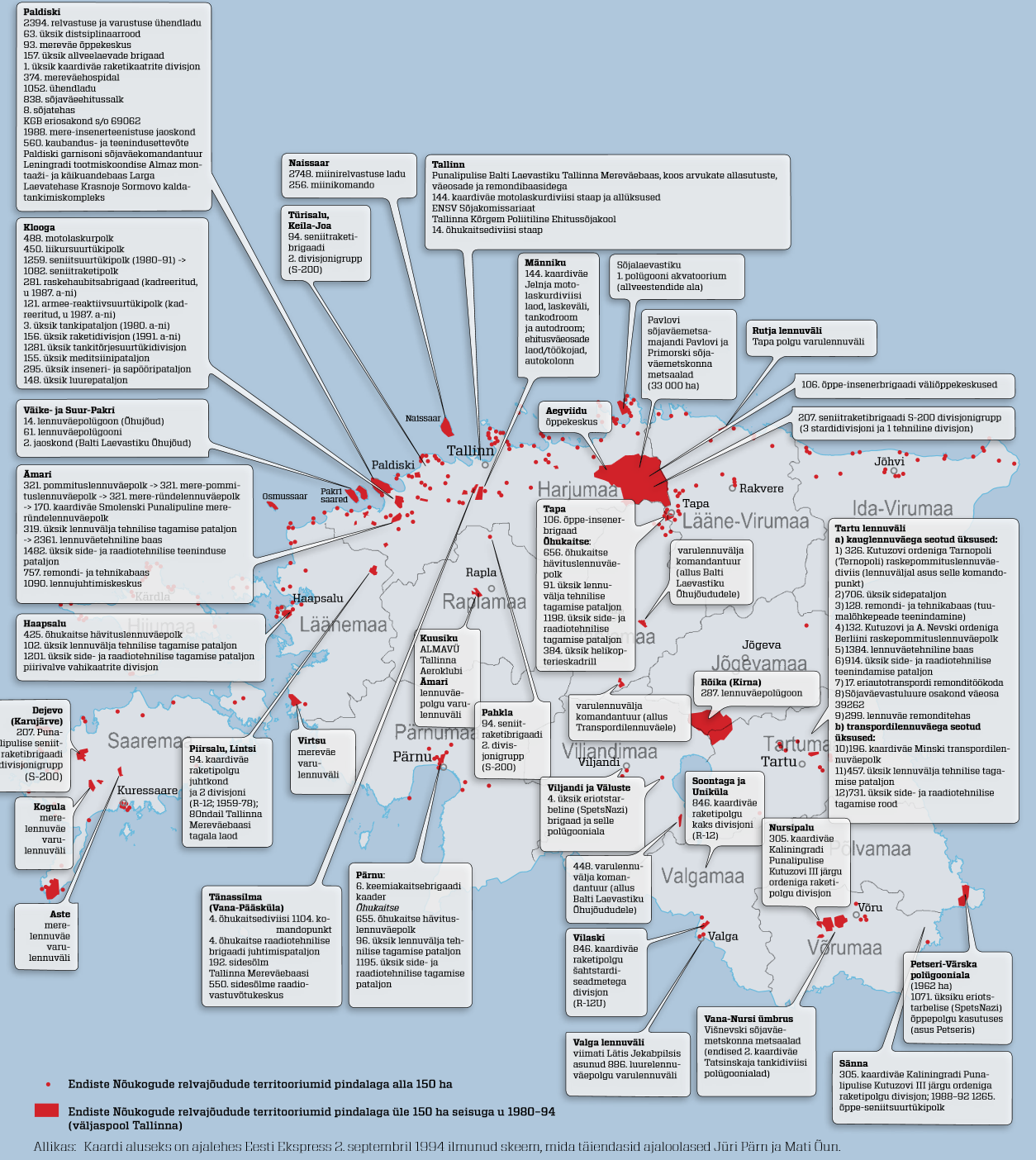 ega neid kogu aeg "nii vähe" pole olnud. Lasketiire/laskevälju on ka peale iseseisvumist suletud. Näiteks Udria laskeala Ida-Virumaal pandi kinni 2006 aastal. See oli samuti endine ülevõetud Nõukogude armee objekt. Autoriks siis tollane siseminister Jüri Pihl.