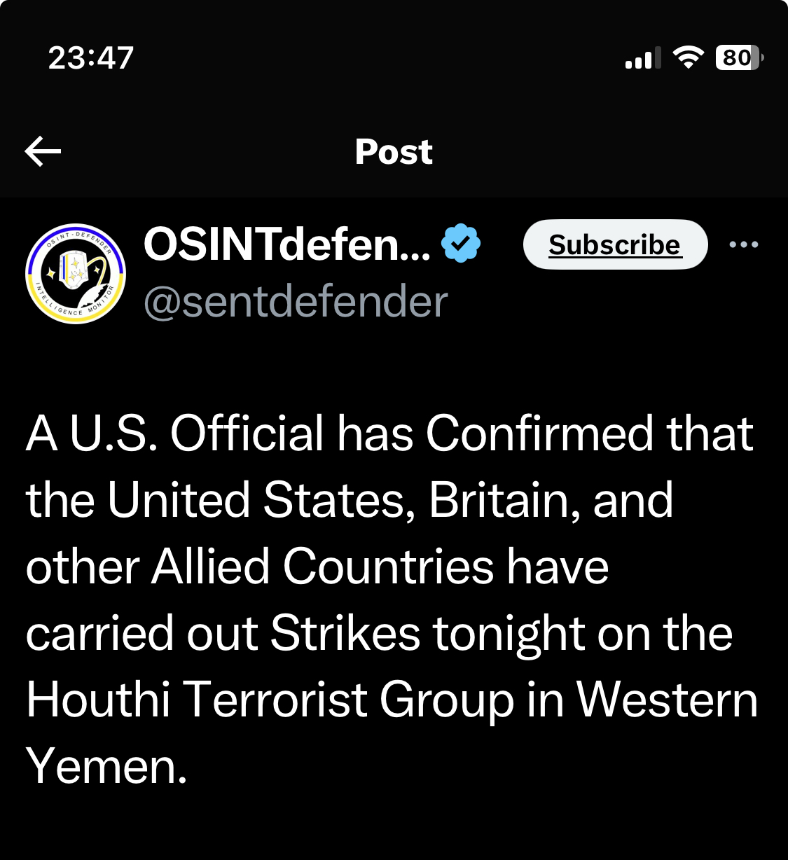 Some kirjutas: 14 Jaan, 2024 16:30 Paistab, et ainuke variant kuidas Houthe varustada on meritsi, ehk siis mereblokaad võib neid tugevalt mõjutada.