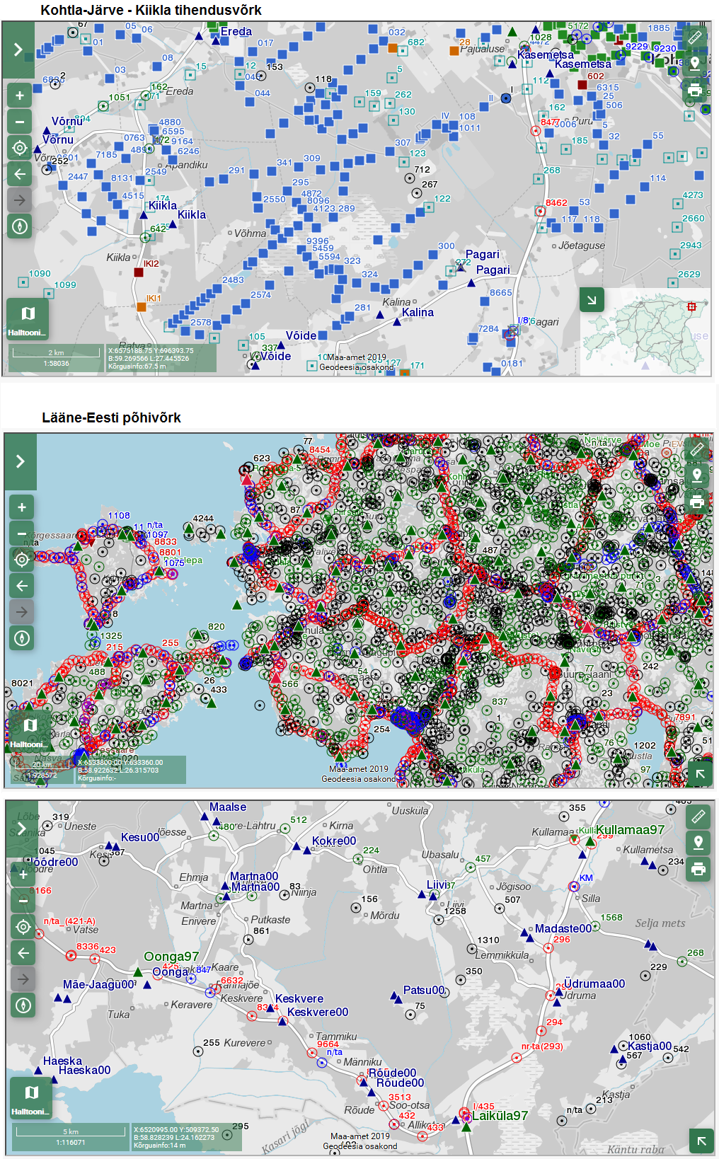 Üksikutes kohtades hajaasustuses on rajatud tihedam põhivõrk (nt. Sillamäe ümbrus, Kohtla-Järve ümbrus, Paldiski ümbrus jms) kus on tihedamalt palju omavahel teoreetiliselt nähtavaid põhivõrgu punkte.