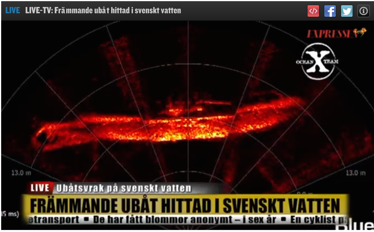A submarine found on the ground near the Swedish coast, revealing Expressen. Divers have located wreckage and the Armed Forces have taken part of the film material being analyzed.