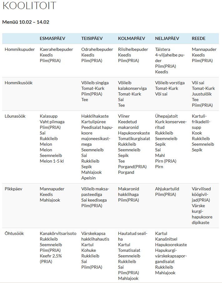 Panin netti otsingusse koolitoit/menüü ja esimesena viskas ette